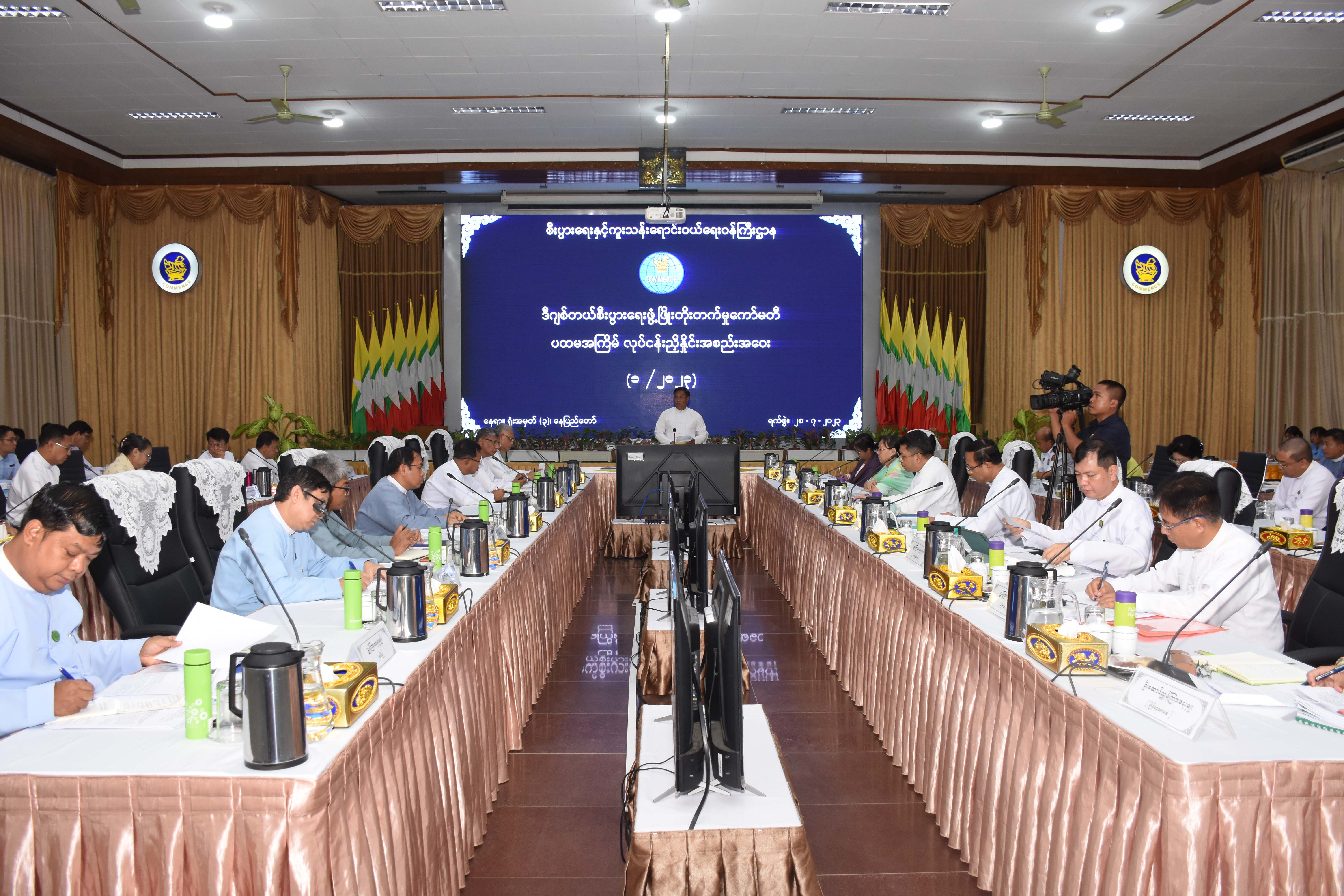 အစည်းအဝေးတွင် ဒုတိယဝန်ကြီးချုပ်နှင့် ပို့ဆောင်ရေးနှင့် ဆက်သွယ်ရေးဝန်ကြီးဌာန ပြည်ထောင်စုဝန်ကြီး ဗိုလ်ချုပ်ကြီး တင်အောင်စန်း က ယနေ့ကမ္ဘာတစ်ဝန်းတွင်ရှိသည့် နိုင်ငံအသီးသီး၌ Digital Transformation ဟုခေါ်သည့် ဒီဂျစ်တယ်အသွင်ကူးပြောင်းလုပ်ငန်းစဉ်များကို ဦးစားပေးပြီး အရှိန်အဟုန်ဖြင့် ဆောင်ရွက်လျက်ရှိကြ ကြောင်း၊ ဒီဂျစ်တယ်နည်းပညာကို အကျိုးရှိရှိ အသုံးပြုပြီးအုပ်ချုပ်ရေး၊ အခြေခံအဆောက်အဦနှင့် ကုန်သွယ်ရေး၊ ပညာရေး၊ လူမှုရေးအစရှိသည့် နယ်ပယ်အသီးသီးတွင် ဒီဂျစ်တယ်အသွင်ကို ဟန်ချက်ညီညီ ကူးပြောင်း ဆောင်ရွက်ကြခြင်းအားဖြင့် နိုင်ငံ၏ Digital Economy  ဖွံ့ဖြိုးတိုးတက်လာပြီး The Global Value Chain ဟုခေါ်သည့် ကမ္ဘာလုံးဆိုင်ရာ တန်ဖိုးကွင်းဆက်ကို ချိတ်ဆက်လာနိုင်မည်ဖြစ်ပါကြောင်း၊ ဒီဂျစ်တယ်စီးပွားရေး လုပ်ငန်းစဉ်များ အောင်မြင်နိုင်ရန် အစိုးရနှင့် ပုဂ္ဂလိက ဟန်ချက် ညီညီ ပူးပေါင်းဆောင်ရွက်သွားရမည် ဖြစ်ကြောင်း၊ မြန်မာနိုင်ငံတွင် မိုဘိုင်းစနစ်သုံး မြန်နှုန်းမြင့် အင်တာနက်အနေဖြင့် နိုင်ငံ့လူဦးရေ၏ ၉၀ ရာခိုင်နှုန်းကို လွှမ်းခြုံနိုင်ပြီ ဖြစ်သော်လည်း Fixed Broad band တွင် သုံးစွဲသူ ၁ ဒသမ ၆ သန်းခန့်သာ ရှိနေသေးသည့်အတွက် မြန်နှုန်းမြင့် ဖိုင်ဘာအင်တာနက်ကို မြို့ကြီးများသာမက ကျေးလက်ဒေသအထိပါ လက်လှမ်းမှီ အသုံးပြုသွားနိုင်ရန် ဆက်လက် ဆောင်ရွက်သွားရမည် ဖြစ်ပါကြောင်း၊ ပြည်သူ များလိုအပ်သည့် ကျွမ်းကျင်မှုနှင့် နည်းပညာအသစ်များရရှိစေရန်နှင့် အင်တာနက်ကို လူမှုကွန်ရက်နှင့် ဖျော်ဖြေရေးအဆင့်များ ထက်ကျော်လွန်ပြီး စီးပွားရေး၊ ပညာရေးနှင့် ကျန်းမာရေး ကဏ္ဍများတွင် အကျိုးရှိစွာသုံးစွဲနိုင်ရန် အရေးကြီးပါကြောင်း၊ MSME လုပ်ငန်းများအနေဖြင့် အင်တာနက်ကို အကျိုးရှိရှိအသုံးပြုပြီး မိမိတို့၏ ဝန်ဆောင်မှု၊ ထုတ်ကုန်များကို ဝက်ဘ်ဆိုဒ်များမှတစ်ဆင့် ကြော်ငြာမှုပြုလုပ်၍ ဈေးကွက်ရှာဖွေခြင်းနှင့် ငွေပေးချေမှုတွင်လည်း လွယ်ကူအဆင်ပြေစွာ ဆောင် ရွက်ပေးမည်ဆိုပါက  စီးပွားရေး လုပ်ငန်းများ ပိုမိုအောင်မြင်လာမည်ဖြစ်ပြီး နိုင်ငံ၏ စီးပွားရေးတိုးတက်လာစေမည်ဖြစ်ပါကြောင်း၊ e-Government အား ကျော်လွန်သွားပြီးနောက် Digital Government ကို ဆက်လက်ဆောင်ရွက်သွားမည်ဖြစ်ပါကြောင်း၊ Digital Economy ၏ အဓိကကျသည့် မဏ္ဍိုင်တစ်ခုဖြစ်ပြီး Digital Trade နှင့် e-Commerce ကိုအောင်မြင်စွာ အကောင် အထည်ဖော်သွားနိုင်ရန် မလိုလားအပ်သည့် ဖြစ်ရပ်များကို တားဆီးနိုင်ရန်အတွက် ဥပဒေ၊ စည်းမျည်းများနှင့် ထိန်းကျောင်းရန် လိုအပ်ပါကြောင်း၊ ထို့ကြောင့် e-Commerce Law ကို ပြဌာန်းသွားနိုင်ရေးအတွက် e-Commerce Law ရေးဆွဲရေး ကော်မတီကို ၂၀၁၉ ခုနှစ်တွင်ဖွဲ့စည်းခဲ့ပြီး ပထမမူကြမ်းကို ရေးဆွဲခဲ့ပြီးဖြစ်ပါကြောင်း၊ နိုင်ငံတော
