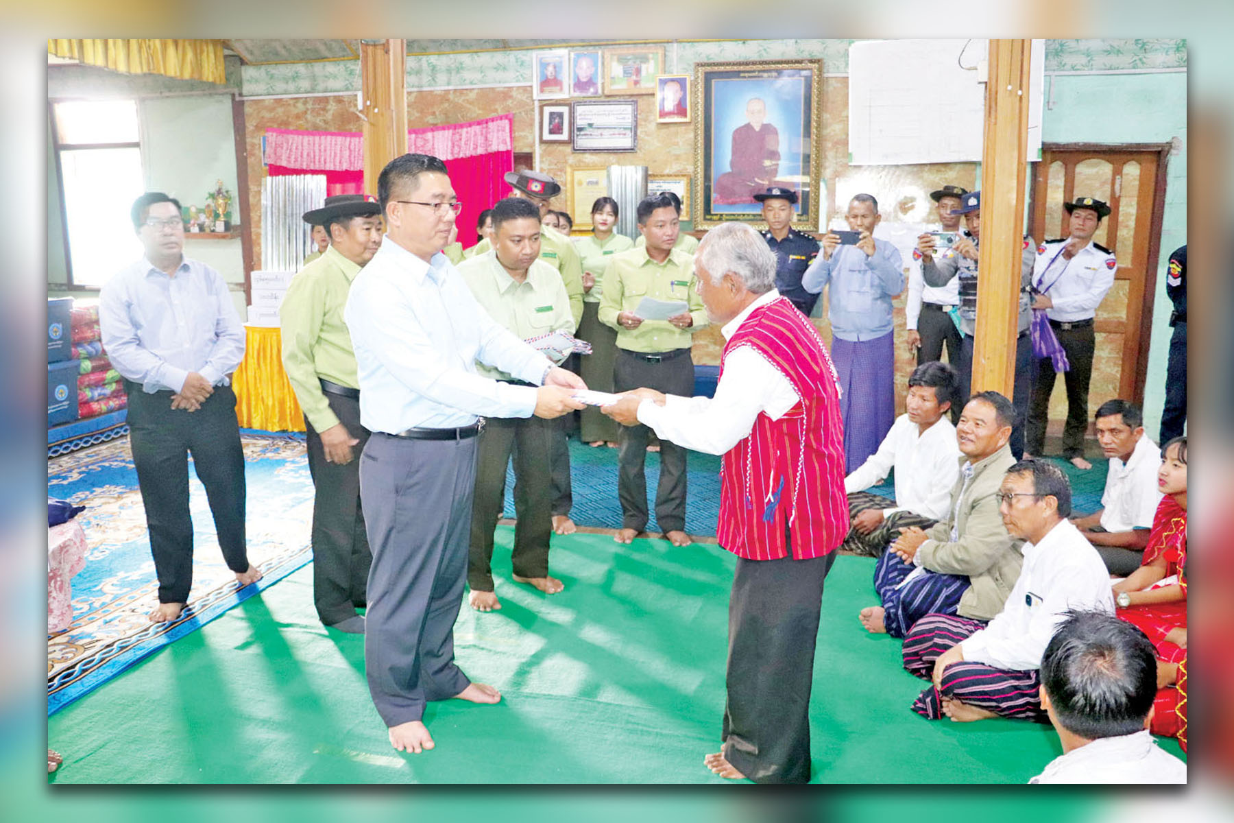 ယင်းနောက် ဒေါပိုးစီကျေးရွာမှ နေအိမ်ထိခိုက်ပျက်စီးခဲ့သည့် ပြည်သူများ နေအိမ်ပြန်လည် ဆောက်လုပ်နိုင်ရန် ထောက်ပံ့ငွေနှင့် သွပ်များ၊ စောင်၊ ဆန်ရိက္ခာဖိုး ငွေနှင့် ကယ်ဆယ်ရေးပစ္စည်း ၁၆ မျိုးတို့ကို ပေးအပ်ရာ ကျေးရွာကိုယ်စားလှယ်များက လက်ခံရယူကြပြီး ကျေးရွာနေပြည်သူတစ်ဦးက ကျေးဇူးတင်စကား ပြောကြားခဲ့ကြောင်း သိရသည်။