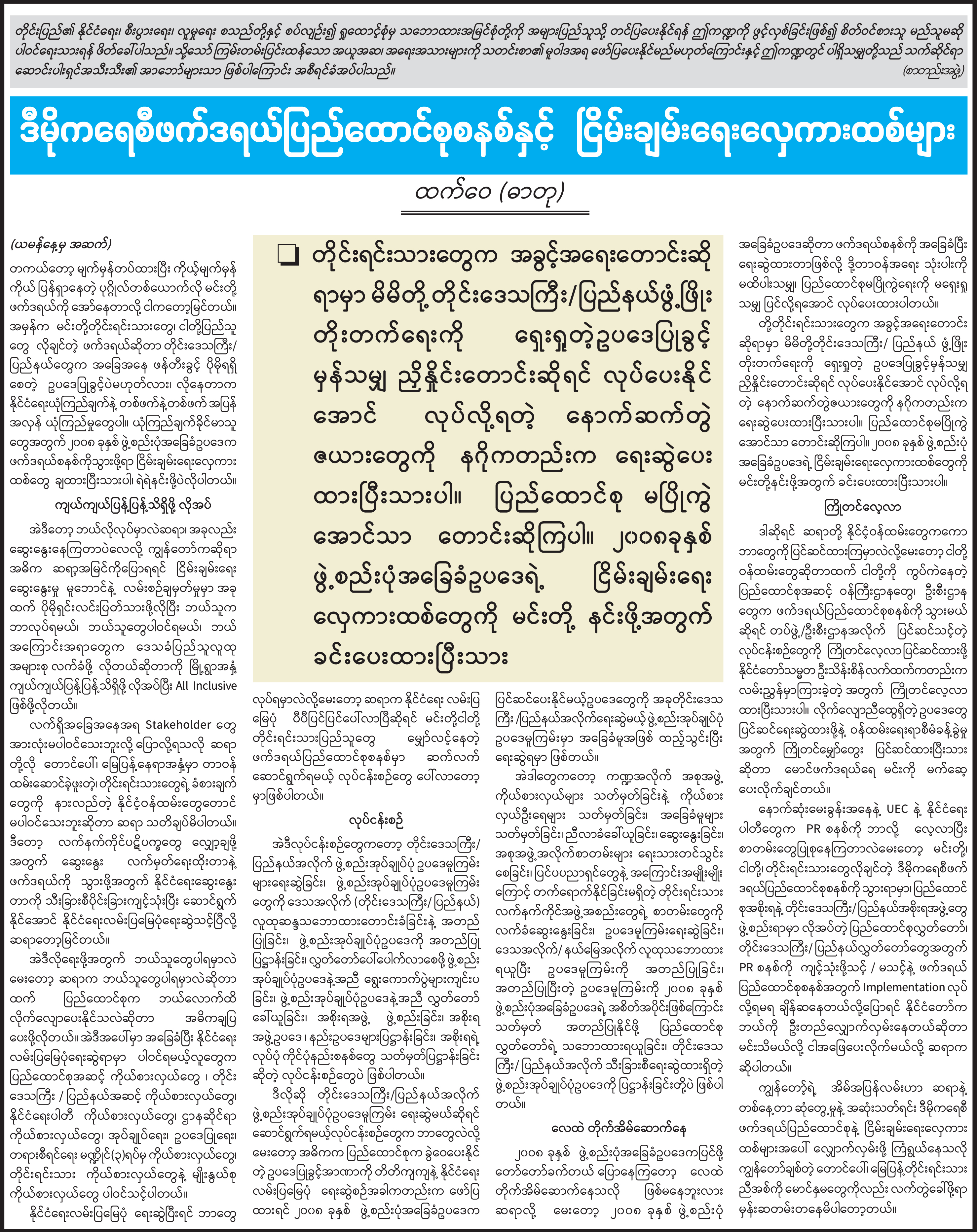 ဒီမိုကရေစီဖက်ဒရယ်ပြည်ထောင်စုစနစ်နှင့် ငြိမ်းချမ်းရေးလှေကားထစ်များ