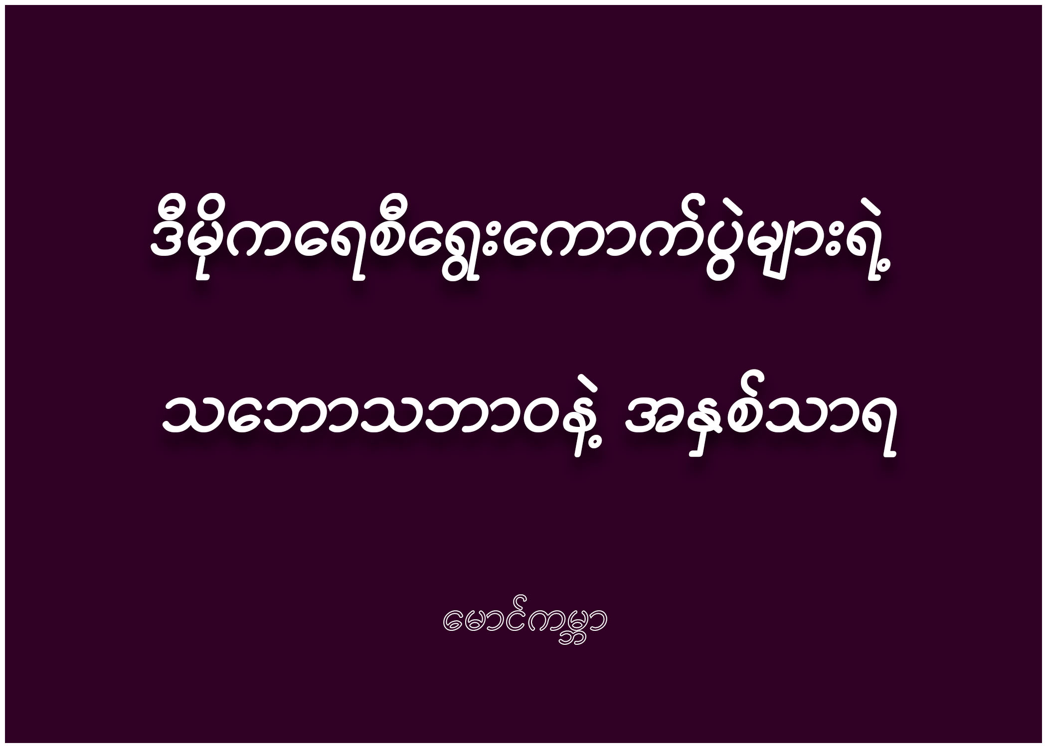 ဒီမိုကရေစီရွေးကောက်ပွဲများရဲ့ သဘောသဘာဝနဲ့ အနှစ်သာရဆိုလို့ ကြီးကျယ်ရန်ကောလို့ မထင်လိုက်ကြပါနဲ့။ တကယ်တော့ ဒီမိုကရေစီ ရွေးကောက်ပွဲများရဲ့ သဘောသဘာဝက ရိုးရှင်းပါတယ်။ မြန်မာစာပေ ကျမ်းဂန်တွေအရဆို ကမ္ဘာဦး လူသားတွေခေတ်ကတည်းက မဟာသမ္မတမင်းကို လူအများက ရွေးကောက် တင်မြှောက်ခဲ့ကြတာ ဖြစ်ပါတယ်။
