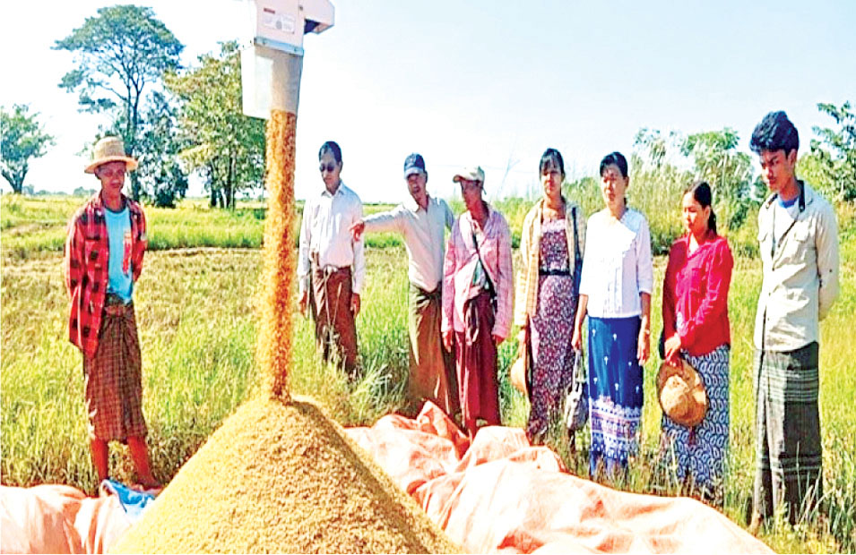 ပဲခူးတိုင်းဒေသကြီး ဒိုက်ဦးမြို့နယ်တွင် သမဝါယမကဏ္ဍမှ နိုင်ငံ့စီးပွားမြှင့်တင်ရေး ရန်ပုံငွေဖြင့် ဆောင်ရွက်ထားသည့် ရွှေလွင်မြေ စိုက်ပျိုးရေးနှင့်အထွေထွေလုပ်ငန်း သမဝါယမအသင်း လီမိတက်က စိုက်ပျိုးထားသော YSR-1 (အောင်နိုင်တိုး)မိုးစပါး စံပြကွက်ရိတ်သိမ်းမှုကို ယမန်နေ့က ပျဉ်းမလွင်ကျေးရွာရှိ တောင်သူ ဦးဇော်ဝင်းသိန်း၏ လယ်မြေ၌ ပြုလုပ်သည်။