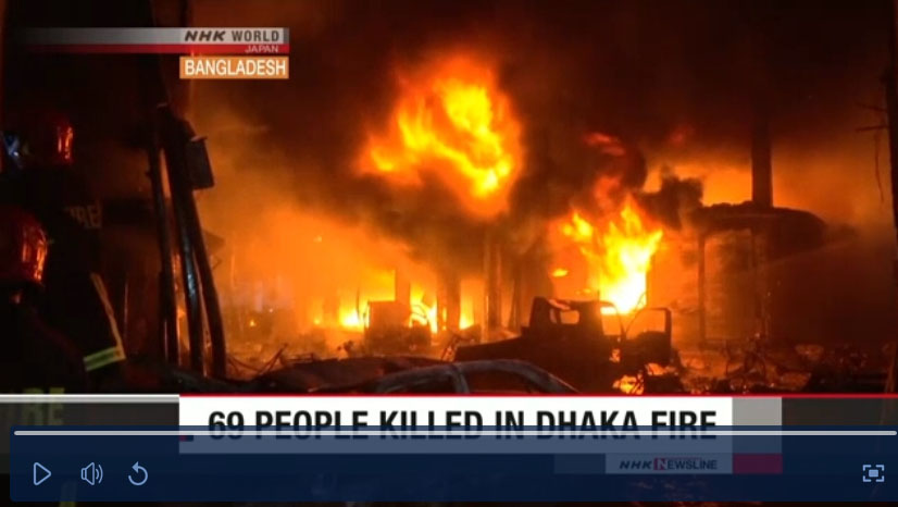ဘင်္ဂလားဒေ့ရှ်နိုင်ငံမြို့တော် ဒါကာတွင် အဆောက်အဦတစ်ခုတွင် မီးလောင်မှုဖြစ်ပွားရာ သေဆုံးသူ ၆၉ဦးအထိ ရောက်ရှိလာပြီး လူပေါင်းများစွာ ဒဏ်ရာရရှိခဲ့ကြောင်း ဒေသန္တရမီးသတ်တပ်ဖွဲ့မှ တာဝန်ရှိသူများက ယနေ့ ပြောကြားသည်။
