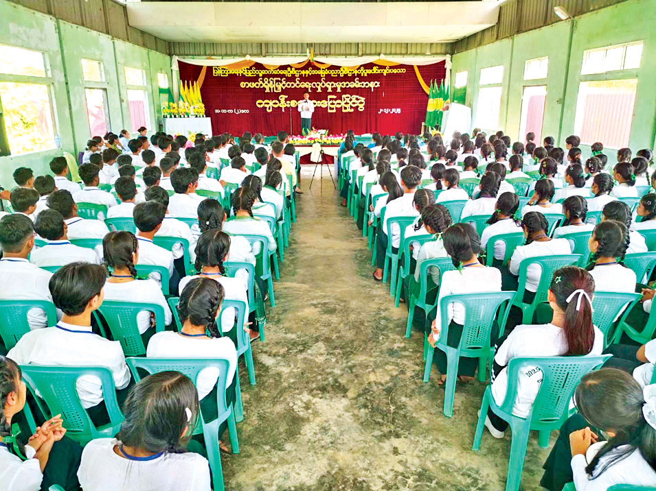ထို့နောက် ကျပန်းစကားပြောပြိုင်ပွဲ၊ ပန်းချီပြိုင်ပွဲနှင့် စာစီစာကုံး ပြိုင်ပွဲတို့တွင် ဆုရရှိသော ကျောင်းသား ကျောင်းသူများအား တာဝန်ရှိသူများက ဆုများပေးအပ်ချီးမြှင့်ခဲ့ကြောင်း သိရသည်။