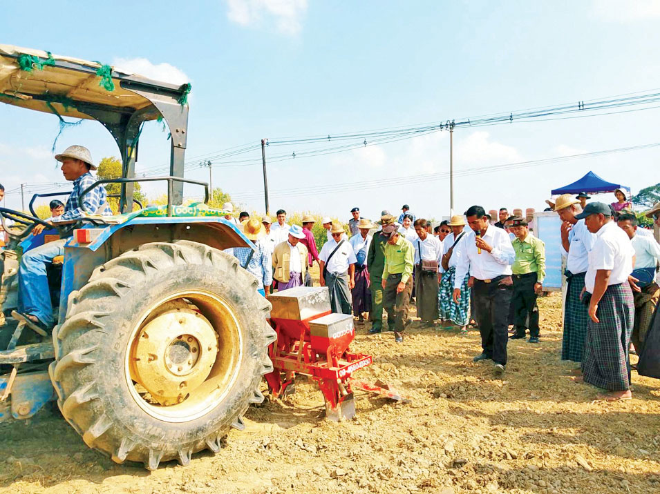 ထို့နောက် ခရိုင်ဦးစီးမှူးနှင့် အဖွဲ့ဝင်များက တောင်သူများထံ နေကြာမျိုးစေ့၊ ပိုက်ဆံလျှော်မျိုးစေ့၊ ပျားပုံးများ၊ တိုက်ရိုက်မျိုးစေ့ချ ကိရိယာများနှင့် ဓာတ်မြေဩဇာများ ပေးအပ်ခဲ့သည်။ ဆက်လက်၍ ရဲချောင်းဝ ကျေးရွာအုပ်စု တောင်သူ ဦးဝင်းမြင့်၏ လယ်မြေတွင် ဆောင်းသီးနှံ (နေကြာ) မျိုးစေ့ချစက်ဖြင့် စိုက်ပျိုးခြင်း၊ အနိမ့်တင်(၂)ချပ်တွဲ ဆိုလာပန့် သရုပ်ပြသခြင်းတို့ကို ကြည့်ရှုအားပေးခဲ့ကြောင်း သိရသည်။