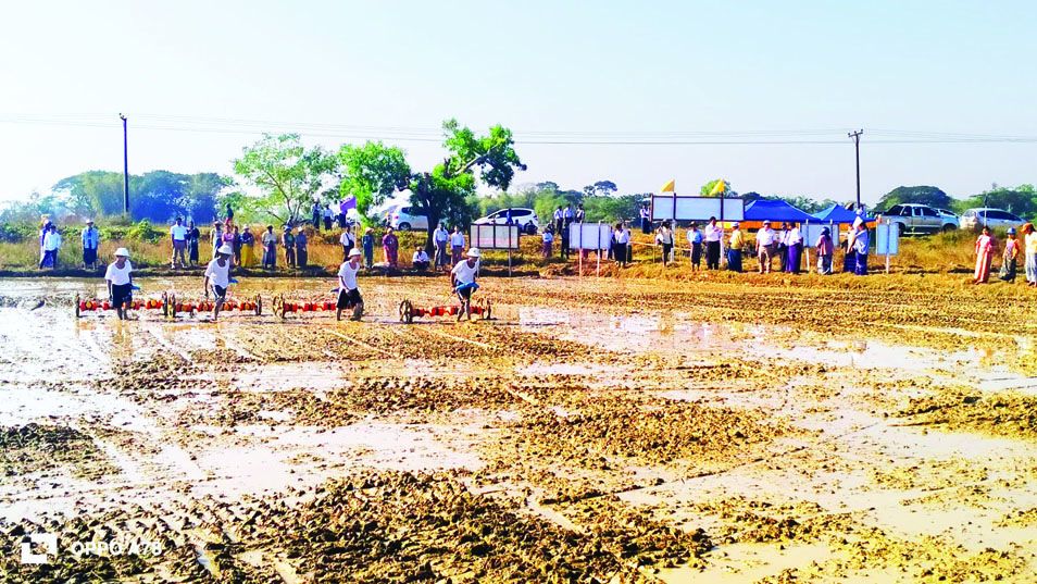 ရန်ကုန်တိုင်းဒေသကြီး ဒလမြို့နယ်၌ ၂၀၂၅- ၂၀၂၆  ခုနှစ် နွေစပါးအား မျိုးစေ့ချကိရိယာ (Drum Seeder) ဖြင့် လက်တွေ့စိုက်ပျိုးခြင်း ကွင်းသရုပ်ပြပွဲအခမ်းအနားကို ယနေ့နံနက်က ရွှေလှေချောင်ကျေးရွာအုပ်စု   တောင်သူ  ဒေါ်နန်းအေးထွမ်းပိုင်ဆိုင်သည့်  လယ်မြေဧက ၁၈.၀၀    ပြုလုပ်သည်။