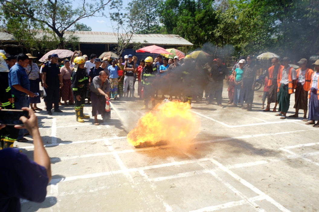 အသိပညာပေးပွဲတွင် ရန်ကုန်တိုင်းဒေသကြီး အမှတ်(၁)လွှတ်တော်ကိုယ်စားလှယ် ဦးထွန်းရင်က အဖွင့်အမှာစကား ပြောကြားခဲ့ပြီး မြို့နယ်မီးသတ်ဦးစီးဌာန ဦးစီးအရာရှိ ဦးဇော်ငြိမ်းအောင် က မြို့နယ်အတွင်းရှိ ဈေးများနှင့် ရပ်ကွက်နေပြည်သူများ၏ နေအိမ်တိုင်၌ မီးချိတ်၊ မီးကတ်၊ ရေပုံး၊ သဲအိတ်များနှင့် မီးသတ်ဆေးဗူးများ ထားရှိဆောင်ရွက်ကြစေရေး၊ မီးဘေးကြိုတင်ကာကွယ်ရေးအတွက် မီးသတ်ဆေးဘူးအသုံးပြုနည်း၊ မီးလောင်မှု အန္တရာယ်မှ လျော့နည်းစေရန်၊ မီးဖိုချောင်သုံး ထင်းနှင့် မီးသွေးများ အသုံးပြုပြီးပါက ရေဖြင့် သေချာစွာ ငြှိမ်းသတ်ကြရန်နှင့် လျှပ်စစ်မီး အသုံးပြုပါက မီးသတ်ဆေးဘူးများ ဆောင်ထားကြရန် ပြောကြားခဲ့ပြီး မီးငြှိမ်းသတ်ခြင်းကို လက်တွေ့ သရုပ်ပြသ ဇာတ်တိုက်လေ့ကျင့်ဆောင်ရွက်ခဲ့သည်။
