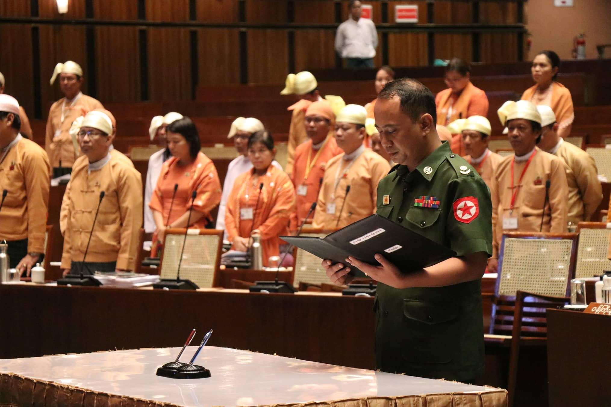 အစည်းအဝေးတွင် ကတိသစ္စာ မပြုရသေးသော တပ်မတော်သား တိုင်းဒေသကြီးလွှတ်တော် ကိုယ်စားလှယ် ဗိုလ်မှူး သူအောင်ဇော် က ကတိသစ္စာပြုခြင်းနှင့် ကတိသစ္စာပြုလွှာပေါ်တွင် လက်မှတ်ရေးထိုးသည်။