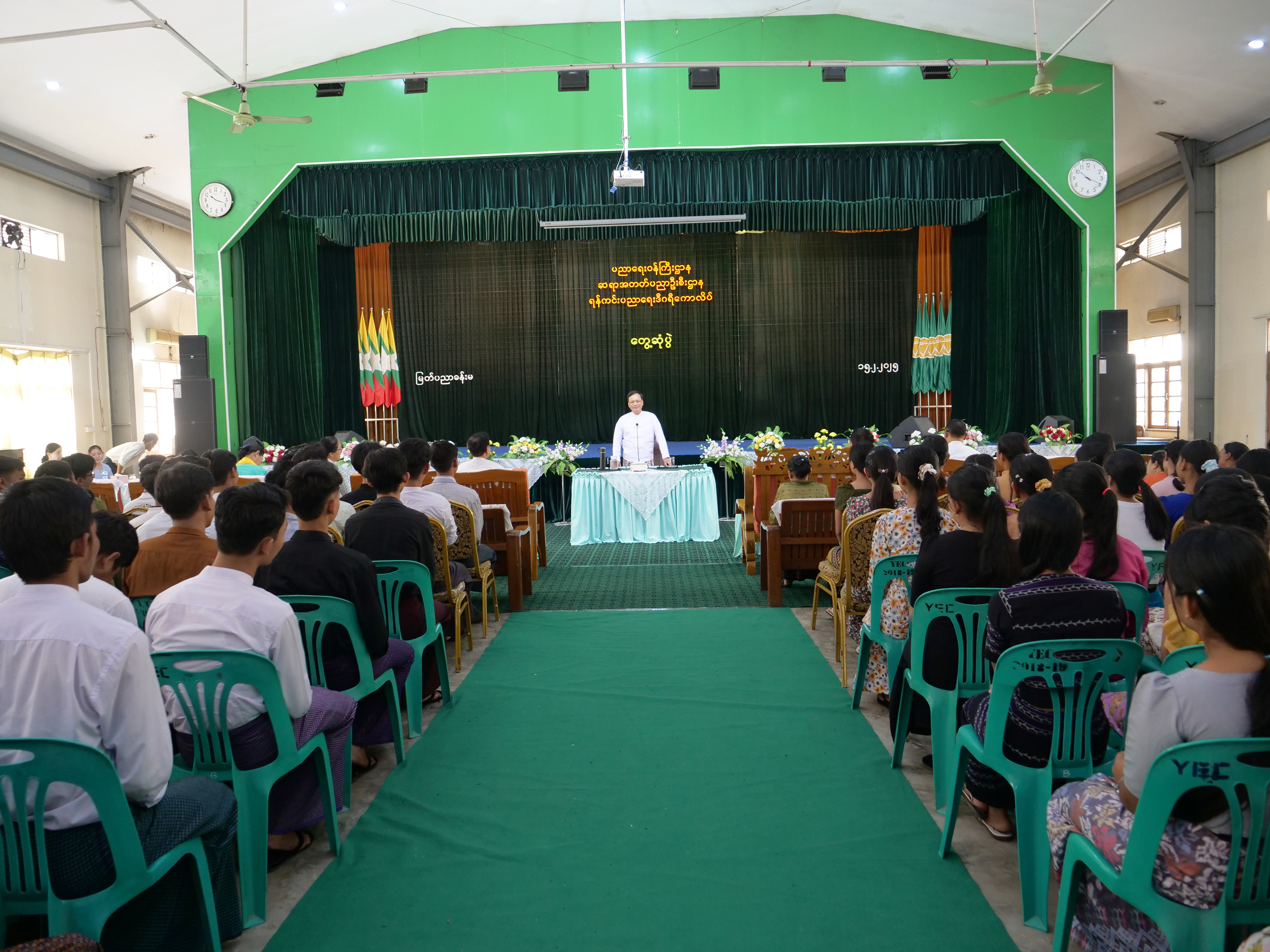 ပညာရေးဝန်ကြီးဌာန ဒုတိယဝန်ကြီး ဒေါက်တာဇော်မြင့်သည် ယမန်နေ့နံနက်ပိုင်းက ရန်ကင်းပညာရေးဒီဂရီကောလိပ်သို့ ရောက်ရှိပြီး ကျောင်းအုပ်ကြီး၊ ဆရာဆရာမများ၊ ကျောင်းသားကျောင်းသူများနှင့် တွေ့ဆုံသည်။
