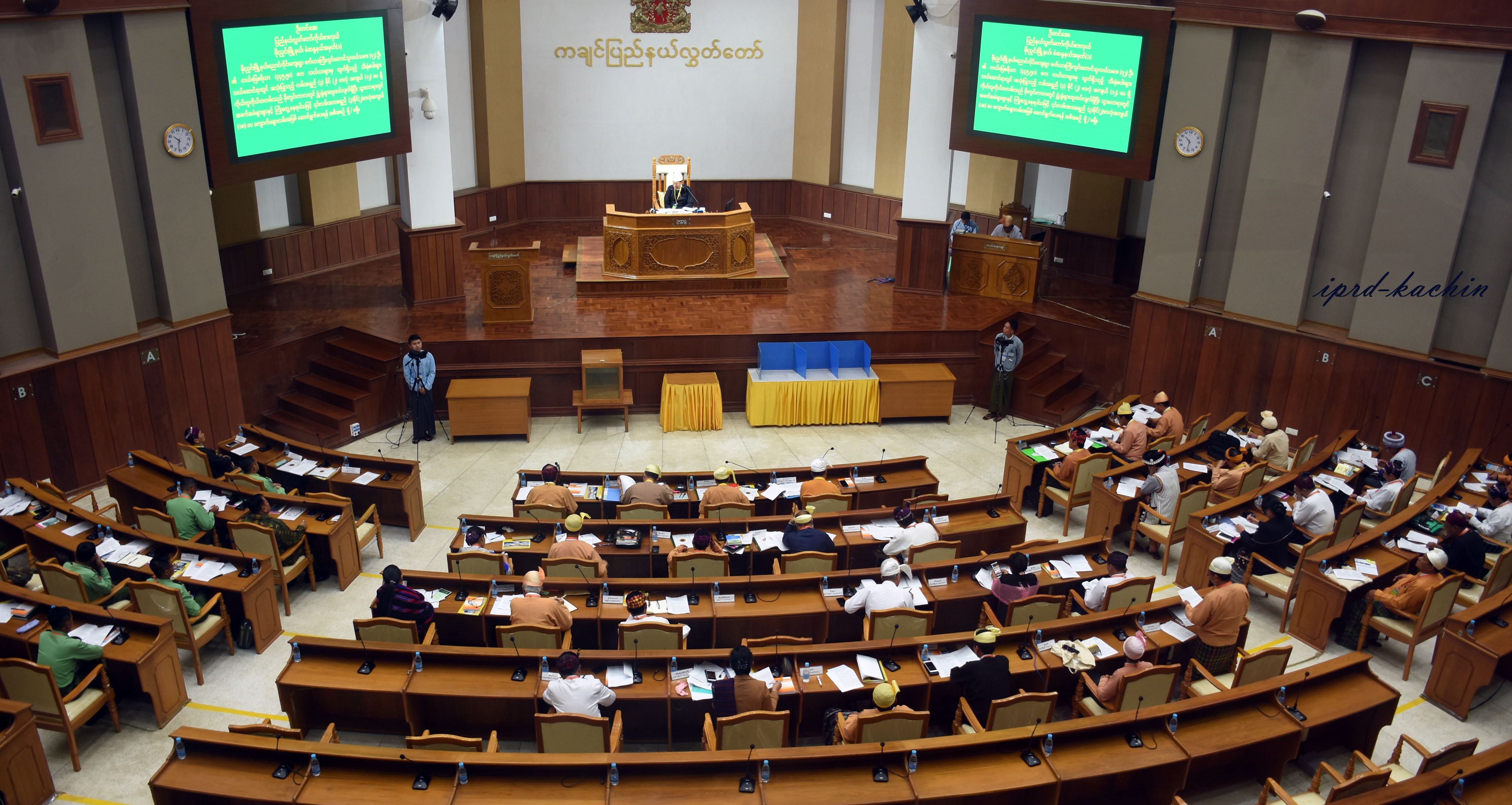 အစည်းအဝေးတွင် လွှတ်တော်ကိုယ်စားလှယ်များက ဝိုင်းမော်၊ ဗန်းမော်၊ မိုးမောက်၊ ရွှေကူမြို့နယ်များတွင် စိုက်ပျိုးလျက်ရှိသော တရုတ်တစ်သျှူးငှက်ပျောကိစ္စနှင့် ပတ်သက်၍ တရုတ်တွဲကားကြီးများကို ကချင်ပြည်နယ်အတွင်းသို့ ဝင်ခွင့်မပြုဘဲ နယ်စပ်ဂိတ်များတွင်သာ ကုန်ပစ္စည်း အချိန်းအပြောင်းလုပ်ပေးပါက လမ်း၊ တံတားပျက်စီးမှု၊ သယံဇာတခိုးထုတ်မှုများမှ အလိုအလျှောက် ကာကွယ်တားဆီးနိုင်မည်ဖြစ်ကြောင်း (၁၁)ကြိမ်မြောက် ပုံမှန်အစည်းအဝေး (ပဉ္စမနေ့)တွင် အစိုးရ၏အာမခံချက်များ၊ ကတိများ၊ တာဝန်ခံချက်များ၊ အုပ်ချုပ်ရေး၊ တရားစီရင်ရေးနှင့် နယ်စပ်ရေးရာကော်မတီ၏ အစီရင်ခံစာတွင် ကော်မတီ၏ အကြံပြုချက်အနေဖြင့် တင်သွင်းခဲ့သော်လည်း မည်သည့်ပြည်နယ်လွှတ်တော်ကိုယ်စားလှယ်မှ အစီရင်ခံစာအပေါ် ဆွေးနွေးခြင်းများမရှိခဲ့သလို၊ ပြည်နယ်အစိုးရအနေဖြင့်လည်း လက်ခံစဉ်းစားပေးခဲ့ခြင်းမရှိသည့် အတွက်ကြောင့် ယခုအချိန်အထိ တစ်သျှူးငှက်ပျောသယ် တရုတ်တွဲကားကြီးများ လွပ်လပ်စွာ သွားလာနေသည်ကို တွေ့ရှိနေရသလို လမ်း၊ တံတားများလည်း အတော်ပျက်စီးလာသည်ကို တွေ့မြင်နေရပါသဖြင့် ကချင်ပြည်နယ်၏ ဆုံးရှုံးနစ်နာမှုများအား ထောက်ရှု၍ တရားဝင်ပိတ်သိမ်းပြီး နယ်စပ်ဂိတ်တွင်သာ ကုန်ပစ္စည်းအချိန်းအပြောင်းပြုလုပ်ပေးပါရန် အစီအစဉ်ရှိ/မရှိမေးခွန်း အပါအဝင် မေးခွန်း(၁၂)ခုကို မေးမြန်းကြရာ သက်ဆိုင်ရာပြည်နယ်ဝန်ကြီးများက ပြန်လည်ရှင်းလင်းဖြေကြားကြသည်။
