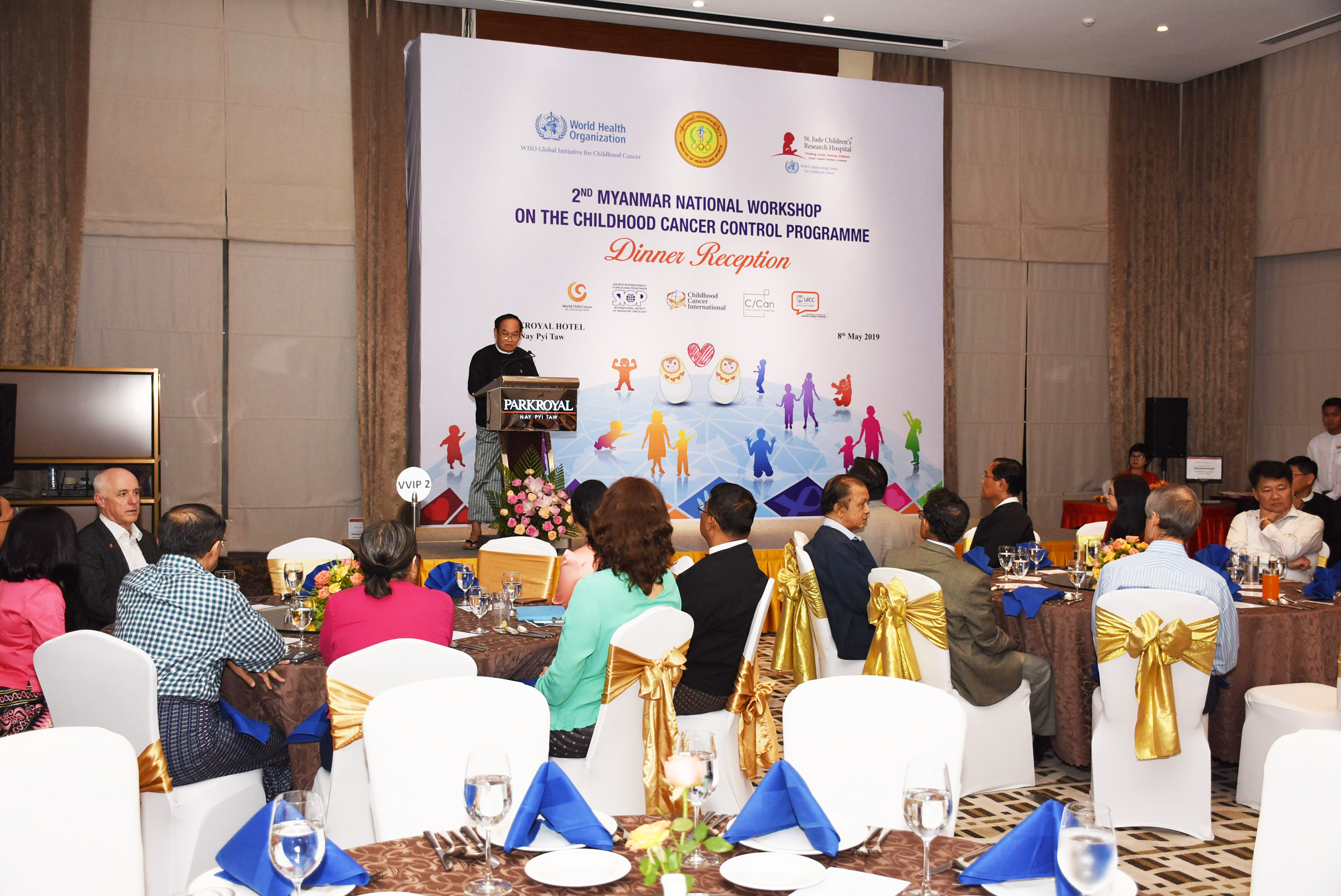 ဒုတိယအကြိမ် ကလေးအရွယ်တွင်ဖြစ်သော ကင်ဆာရောဂါများ ကာကွယ်ရေးစီမံချက်၏ ဒုတိယအကြိမ် အမျိုးသားအဆင့် အလုပ်ရုံဆွေးနွေးပွဲ၏ ပထမနေ့ကိုမေလ (၈)ရက်နေ့တွင် Summit Parkview Hotel၊ ရန်ကုန်တွင် ကျင်းပခဲ့ပြီး အလုပ်ရုံဆွေးနွေးပွဲ ဒုတိယနေ့ကို မေလ (၉)ရက်နေ့၊ ယနေ့နံနက်ပိုင်းတွင် Parkroyal Hotel ၌ စတင်ကျင်းပခဲ့ရာ ကျန်းမာရေးနှင့် အားကစားဝန်ကြီးဌာန၊ အမြဲတမ်းအတွင်းဝန် ပါမောက္ခဒေါက်တာသက်ခိုင်ဝင်း တက်ရောက်၍ အဖွင့်အမှာစကား ပြောကြားသည်။