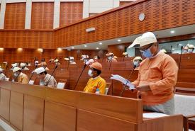 အစည်းအဝေးတွင် ကတိသစ္စာ မပြုရသေးသော တပ်မတော်သား လွှတ်တော်ကိုယ်စားလှယ် ဗိုလ်မှူးကြီးသက်နိုင်နှင့် ဗိုလ်ကြီး ဇင်မင်းထွန်းတို့က ကတိသစ္စာပြုပြီး ကတိသစ္စာပြုလွှာပေါ်တွင် လက်မှတ်ရေးထိုးခဲ့ကြသည်။