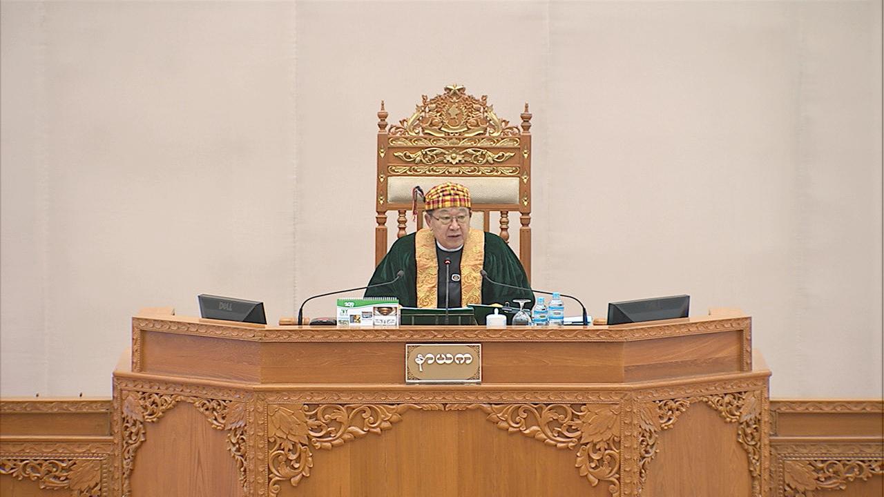 ထို့နောက် ပြည်ထောင်စုလွှတ်တော် နာယက က ယင်းကိစ္စနှင့် စပ်လျဉ်း၍ အတည်ပြုရန် လွှတ်တော်၏ အဆုံးအဖြတ်ရယူရာ လွှတ်တော်က သဘောတူအတည် ပြုကြောင်း ကြေညာသည်။