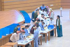 ရှေးဦးစွာ ပြည်ထောင်စုလွှတ်တော်ရုံး ညွှန်ကြားရေးမှူးချုပ် ဦးကျော်စိုးက အတည်ပြုမည့် ဆန္ဒမဲလက်မှတ်များကို ရေတွက်အပ်နှံသည်။