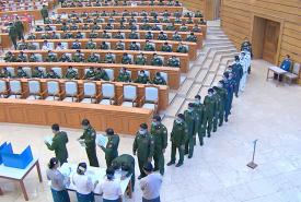 ယင်းနောက် အမျိုးသားလွှတ်တော် ဥက္ကဋ္ဌ မန်းဝင်းခိုင်သန်း၊ ပြည်ထောင်စုလွှတ်တော် ဒုတိယနာယက ဦးထွန်းအောင် (ခ) ဦးထွန်းထွန်းဟိန်၊ အမျိုးသားလွှတ်တော် ဒုတိယဥက္ကဋ္ဌ ဦးအေးသာအောင်နှင့် ပြည်ထောင်စုလွှတ်တော် ကိုယ်စားလှယ်များက သတ်မှတ် နေရာတွင် လျှို့ဝှက်ဆန္ဒပြုခြင်း နည်းလမ်းဖြင့် ဆန္ဒမဲပေးကြသည်။