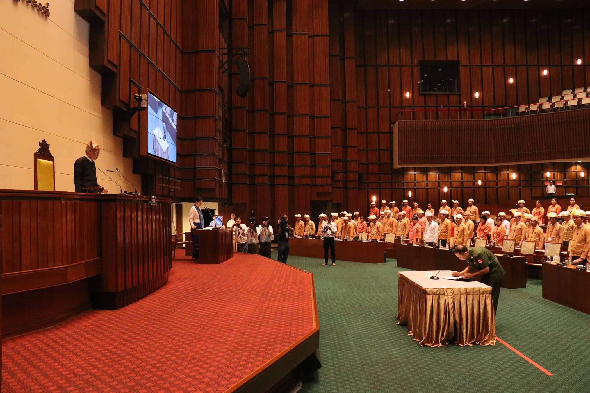 အစည်းအဝေးတွင် တပ်မတော်သားတိုင်းဒေသကြီးလွှတ်တော် ကိုယ်စားလှယ် အစားထိုး ပြောင်းလဲမှုနှင့်စပ်လျဉ်း၍ ကတိသစ္စာ မပြုရသေးသော တပ်မတော်သားတိုင်းဒေသကြီး လွှတ်တော် ကိုယ်စားလှယ် ဗိုလ်မှူး သူအောင်ဇော်က ကတိသစ္စာပြုခြင်းနှင့် ကတိသစ္စာပြုလွှာပေါ်တွင် လက်မှတ် ရေးထိုးသည်။