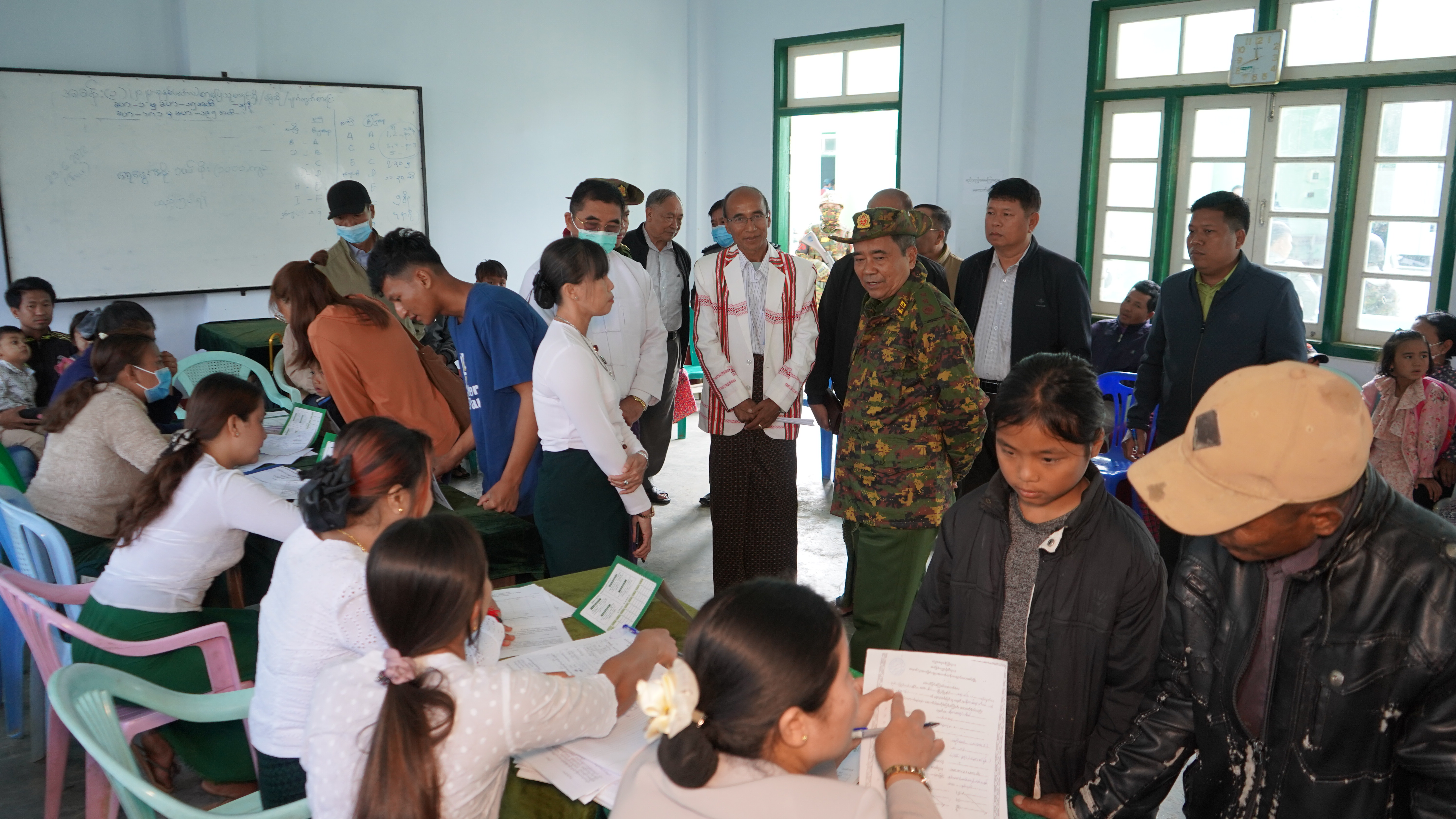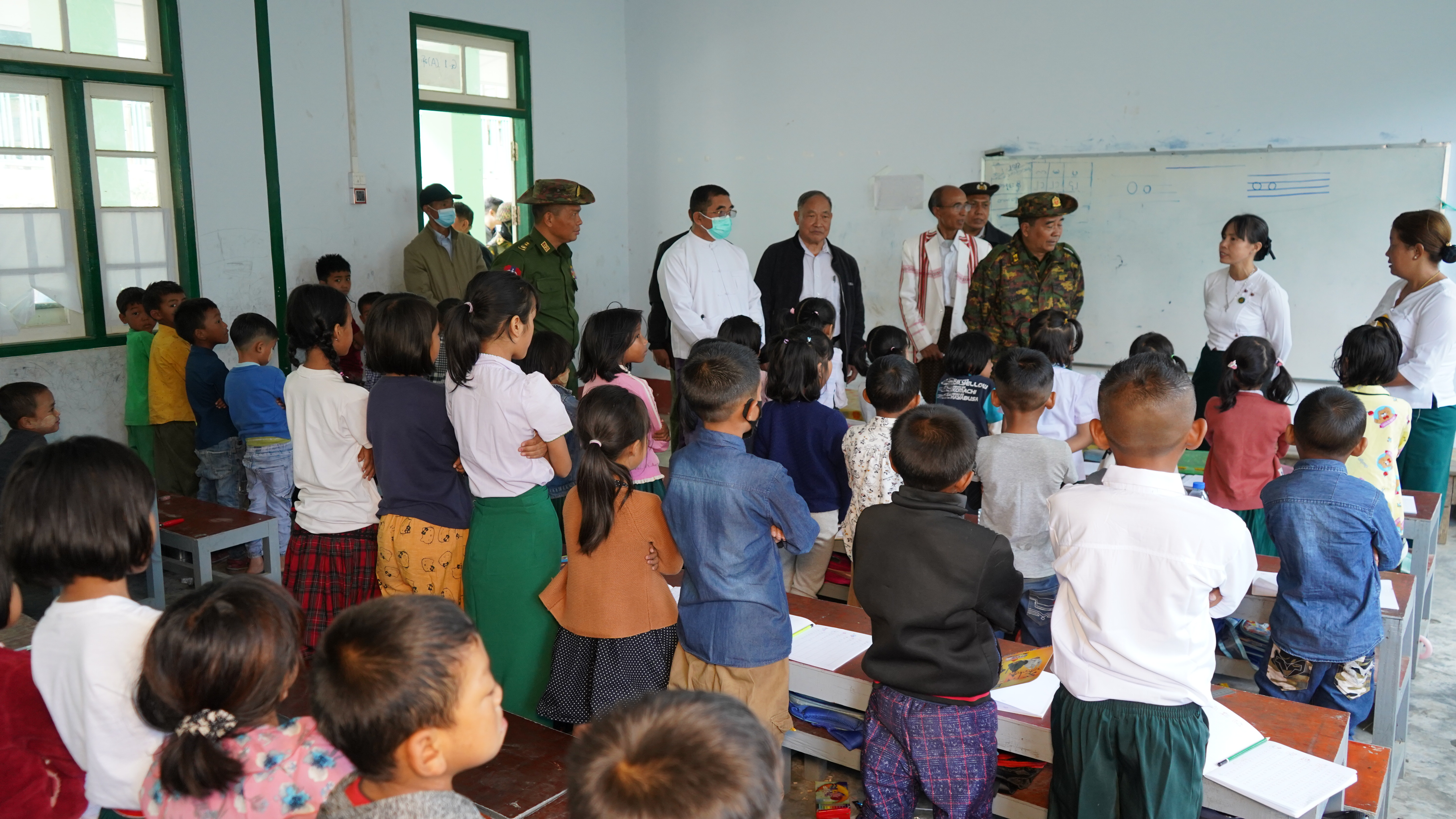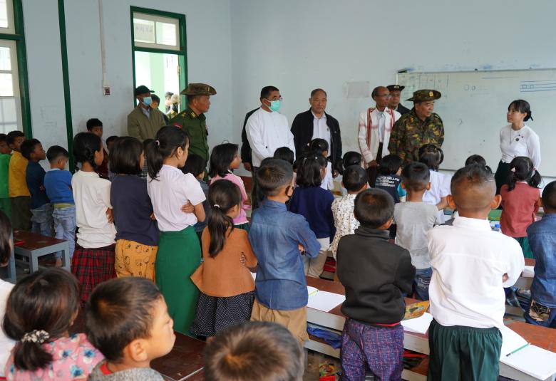 ၂၀၂၃−၂၀၂၄ ပညာသင်နှစ် ဟားခါးမြို့ အမှတ်(၁) အခြေခံပညာအထက်တန်းကျောင်းတွင် ကျောင်းသား ကျောင်းသူများ အေးချမ်းစွာ ပညာသင်ကြားနေမှုကို ဇွန် ၂ ရက်က ချင်းပြည်နယ်၊ ဟားခါးမြို့သို့ ရောက်ရှိနေသော ကာကွယ်ရေး ဦးစီးချုပ်ရုံး (ကြည်း)မှ ဒုတိယဗိုလ်ချုပ်ကြီးမင်းနိုင်၊ ချင်းပြည်နယ်ဝန်ကြီးချုပ် ဒေါက်တာဝုန်ဆွန်းထန်နှင့် ပြည်နယ်ဝန်ကြီးများက သွားရောက် ကြည့်ရှုအားပေးသည်။