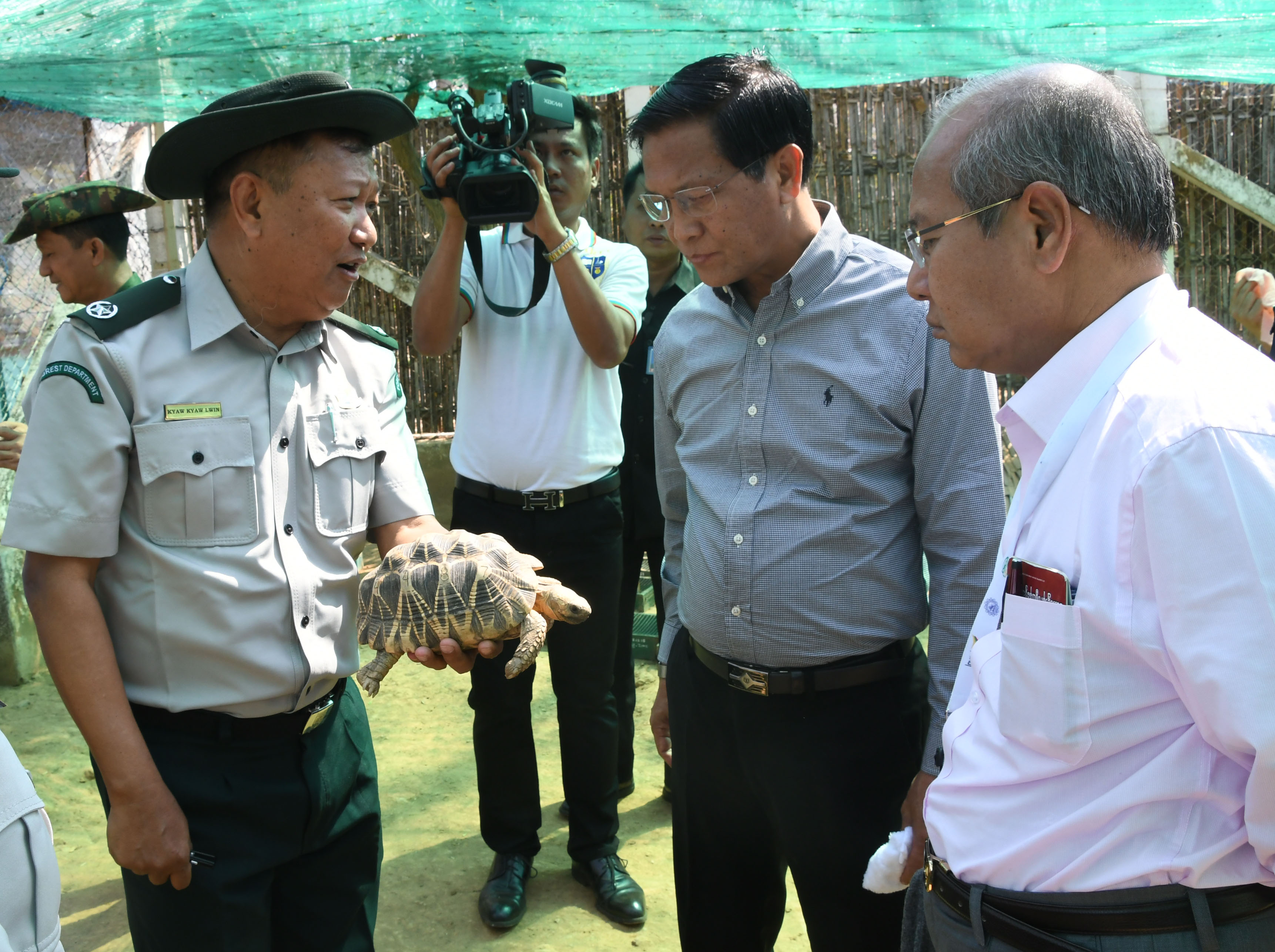 ထို့နောက် ဒုတိယသမ္မတက ဥယျာဉ်အတွင်း လျှပ်စစ်မီးရရှိရေးအတွက် သက်ဆိုင်ရာဌာနများနှင့် ပေါင်းစပ်ညှိနှိုင်းဆောင်ရွက်ပေး၍ ဥယျာဉ်အတွင်း ကြယ်လိပ်များ မွေးမြူထားရှိမှု အခြေအနေကို လှည့်လည်ကြည့်ရှုရာ ဒုတိယညွှန်ကြားရေးမှူးချုပ် ဦးကျော်ကျော်လွင်က လိုက်လံရှင်းလင်းပြသသည်။