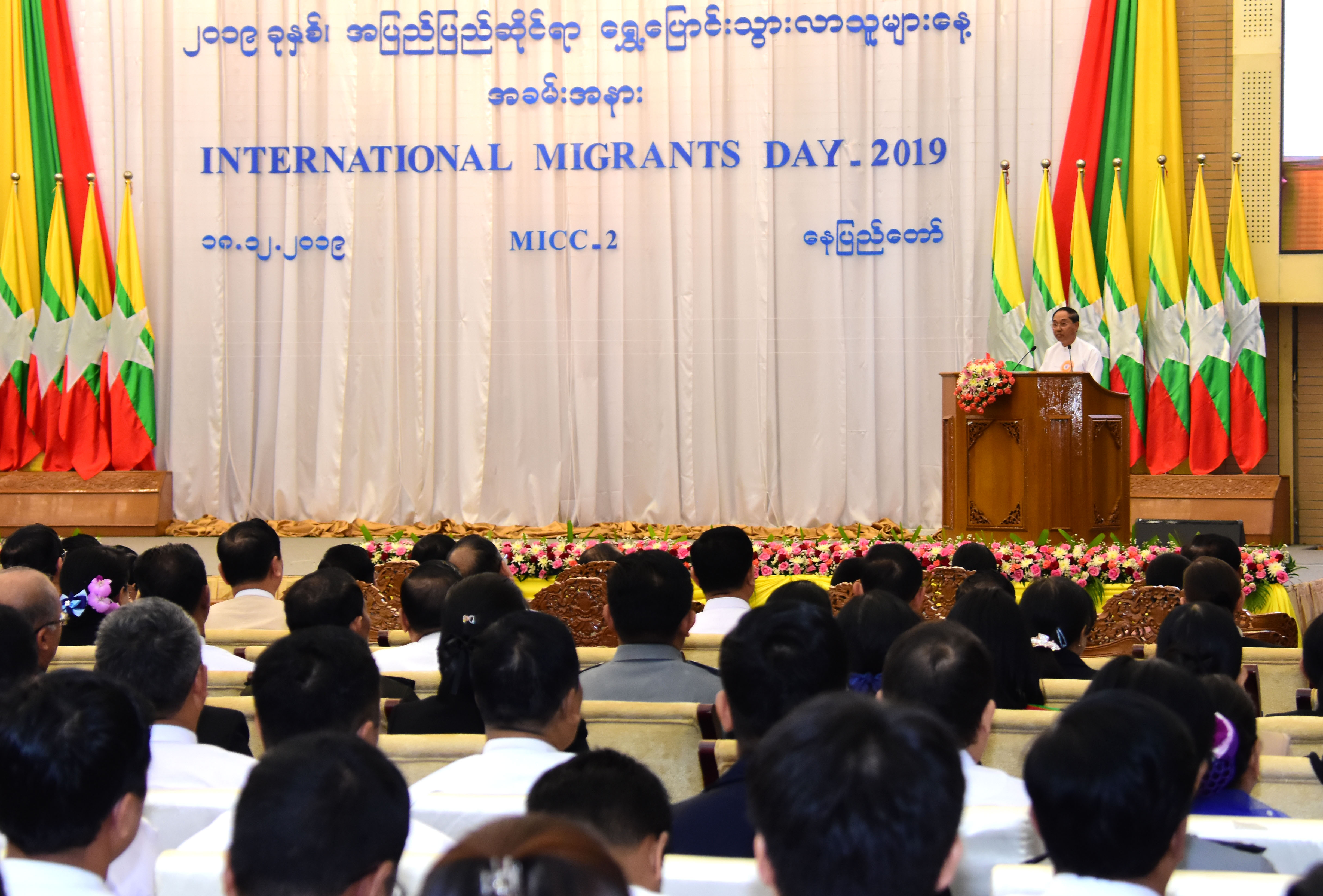 အပြည်ပြည်ဆိုင်ရာ ရွှေ့ပြောင်းသွားလာသူများနေ့ အခမ်းအနားကို ယနေ့ နံနက် နာရီတွင် နေပြည်တော်ရှိ မြန်မာအပြည်ပြည်ဆိုင်ရာ ကွန်ဗင်းရှင်းဗဟိုဌာန() ကျင်းပရာ ပြည်ထောင်စုသမ္မတမြန်မာနိုင်ငံတော် ဒုတိယသမ္မတ ဦးမြင့်ဆွေ တက်ရောက်အမှာစကား ပြောကြားသည်။