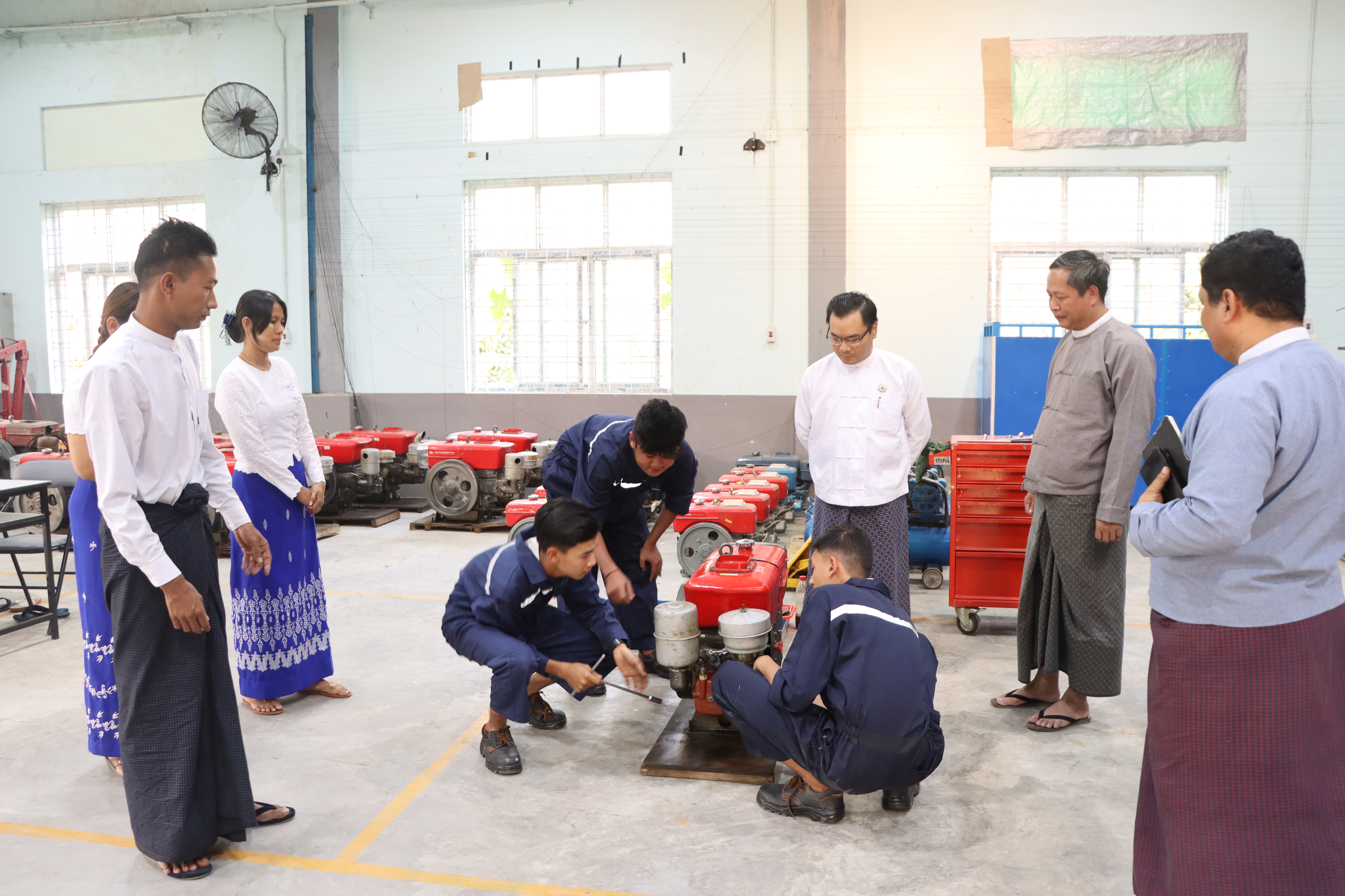 ထို့နောက် ဒုတိယဝန်ကြီးသည် အဆောက်အဦနည်းပညာသင်တန်း လျှပ်စစ်နည်း ပညာသင်တန်း၊ မော်တော်ယာဉ်နည်းပညာ သင်တန်း၊ စက်ပစ္စည်း အစိတ်အပိုင်းများ ထုတ်လုပ်ခြင်းနည်းပညာသင်တန်း၊ အီလက်ထရောနစ်နည်းပညာသင်တန်းနှင့် သုတနည်း ပညာသင်တန်းနှင့် အဆောက်အဦ ပြုပြင်ထိန်းသိမ်းမှု နည်းပညာသင်တန်းတို့တွင် ကျောင်း သား၊ ကျောင်းသူများ လက်တွေ့လုပ်ဆောင်နေမှုများနှင့် ပင်မဆောင်တည်ဆောက်ရေးလုပ်ငန်းကိုကြည့်ရှုစစ်ဆေးပြီး တာဝန်ရှိသူများအား လိုအပ်သည်များ မှာကြားခဲ့ကြောင်း သိရသည်။