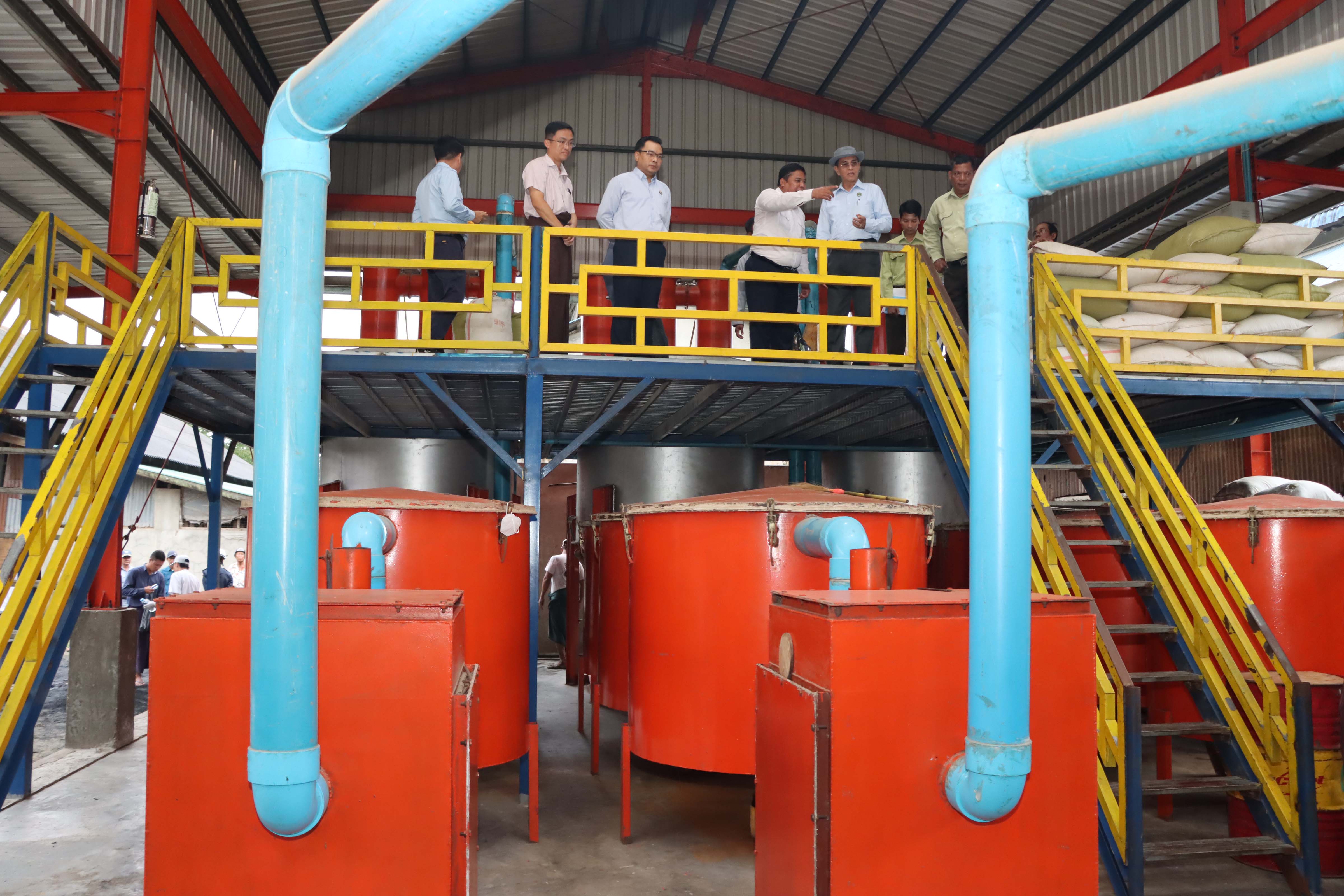 ဦးစွာ ဒုတိယဝန်ကြီးနှင့် အဖွဲ့သည် ကျိုက်လတ်မြို့ မြစ်ကမ်းဘေးရှိ မျိုးမြတ်မွန် ဆန်စက်၌ စပါးခွံလောင်စာသုံး ဓါတ်ငွေ့ထုတ်စက်ရုံ လည်ပတ်နေမှုနှင့် စီးပွားဖြစ် စပါးခွံလောင်စာတောင့် ထုတ်လုပ်နေမှုကို ကြည့်ရှုစစ်ဆေးသည်။
