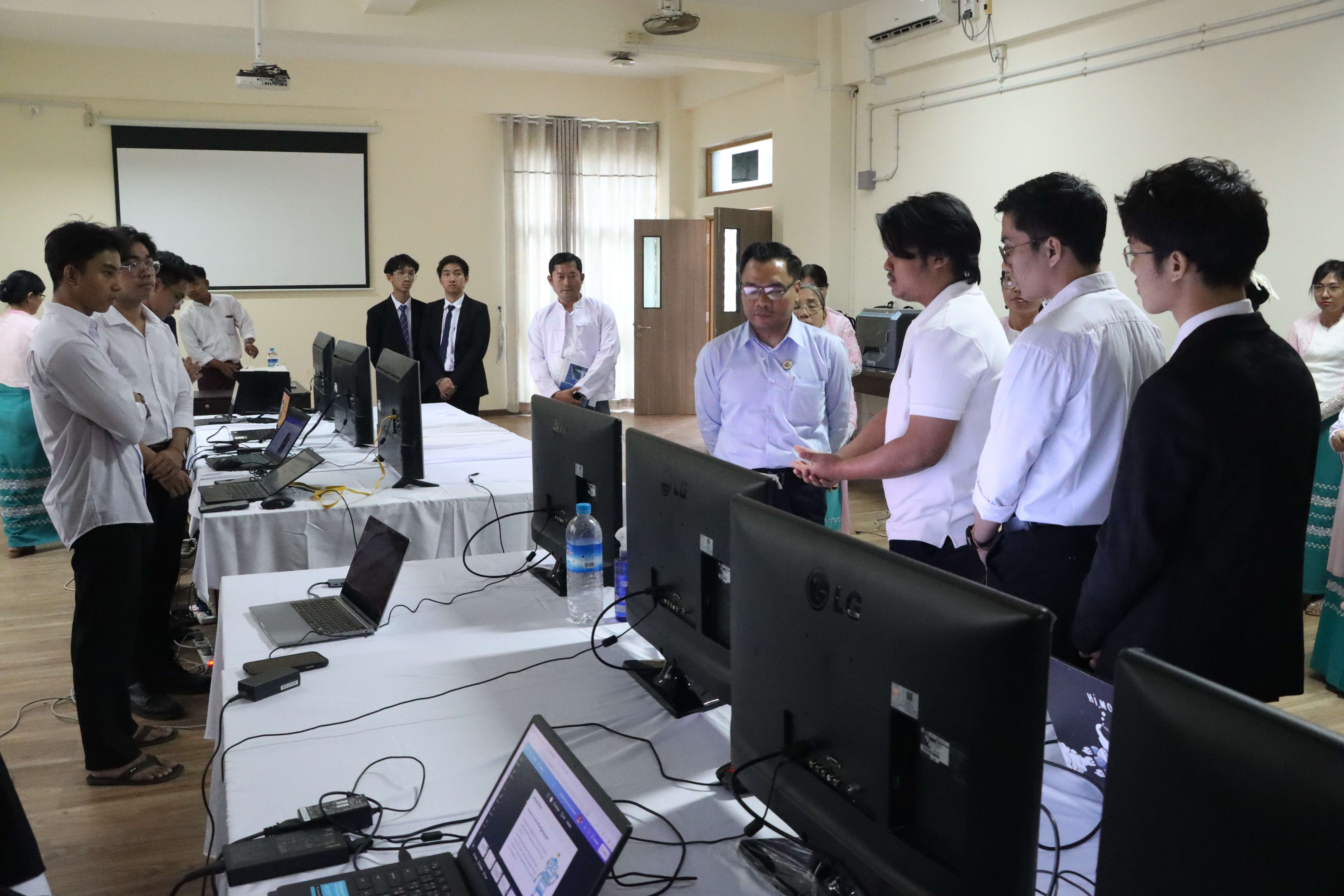 မွန်းလွဲပိုင်းတွင် ဒုတိယဝန်ကြီးသည် မြန်မာသတင်းအချက်အလက်နည်းပညာတက္ကသိုလ်သို့ ရောက်ရှိခဲ့ပြီး AI ၊ EV ၊ E-services၊ E-commerce စသော သုတေသနပရောဂျက်များတွင် ကျောင်းသားများ၏ အဖွဲ့လိုက် Model နှင့် Web Application များ ရေးဆွဲတည်ထောင်မှု အခြေအနေများကို လှည့်လည်ကြည့်ရှုအားပေးကာ တိုးတက်ပြောင်းလဲမှု မြန်ဆန်လျက်ရှိသော ဒစ်ဂျစ်တယ်အသွင်ကူးပြောင်းမှုဆိုင်ရာ IT နည်းပညာအရွေ့တို့နှင့် အမီလိုက်ပါနိုင်ရေးနှင့် နိုင်ငံတကာနည်းပညာပြိုင်ပွဲများတွင် ထိုးဖောက်ယှဉ်ပြိုင်၍ နိုင်ငံ့ဂုဏ်ဆောင်ဆုများ ရရှိရေးကြိုးပမ်းဆောင်ရွက်ရန် တိုက်တွန်းမှာကြားသည်။
