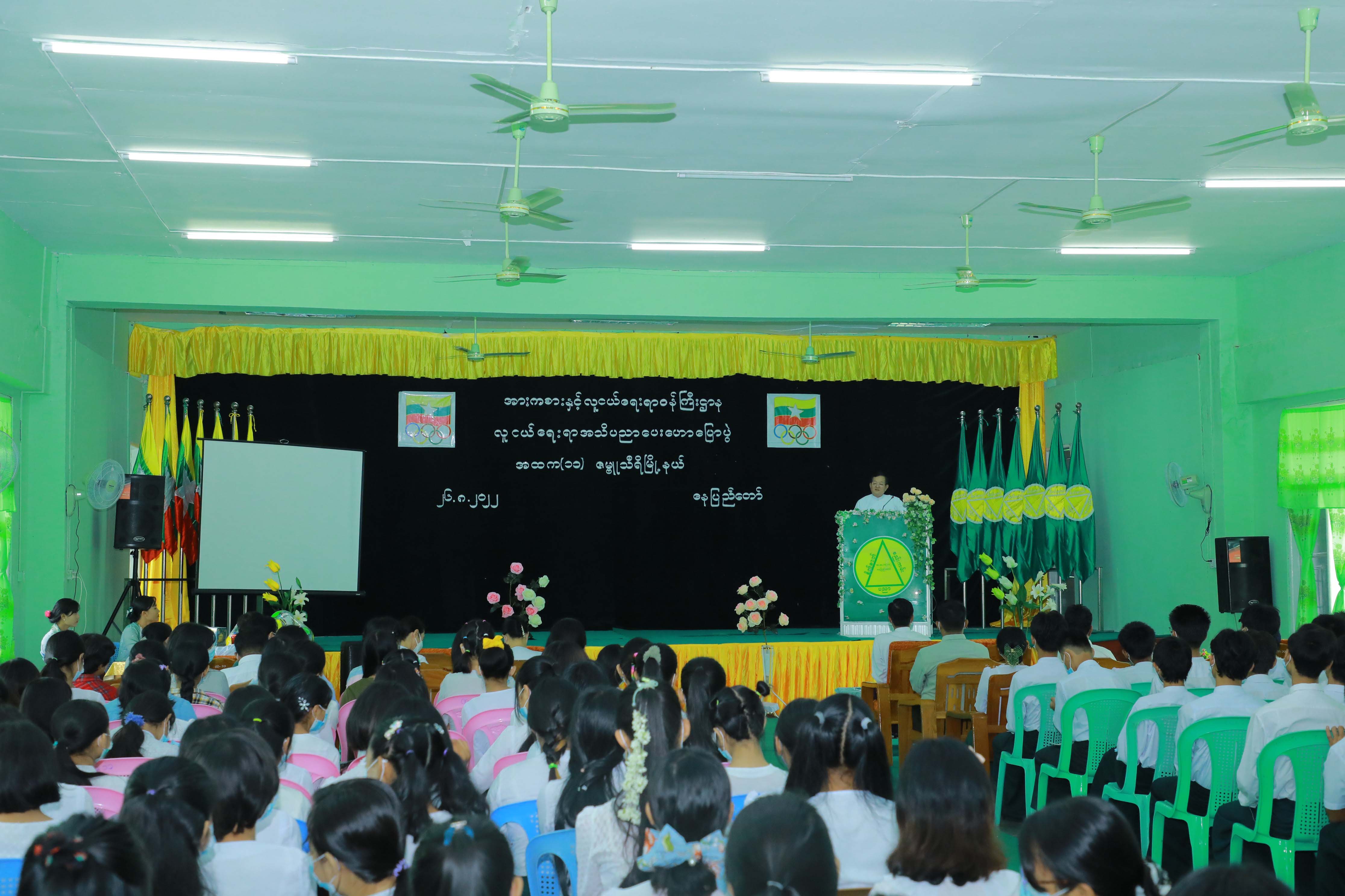 ကျောင်းသား ကျောင်းသူလူငယ်များ ဘက်စုံဖွံ့ဖြိုးတိုးတက်စေရေး၊ တိုင်းချစ်/ပြည်ချစ် စိတ်ဓာတ်ရှင်သန် ထက်မြက်စေရေးနှင့် ဗလငါးတန်ဖွံ့ဖြိုးတိုးတက်စေရေး ရည်ရွယ်၍ "လူငယ် ရေးရာ အသိပညာပေးဟောပြောပွဲ" ကို ယနေ့နံနက် ၉ နာရီခွဲတွင် နေပြည်တော်၊ ဇမ္ဗူသီရိ မြို့နယ်၊ ဝဏ္ဏသိဒ္ဓိရပ်ကွက်၊ အခြေခံပညာ အထက်တန်းကျောင်းအမှတ်(၁၁)ရှိ စုပေါင်းခန်းမ၌ ကျင်းပသည်။