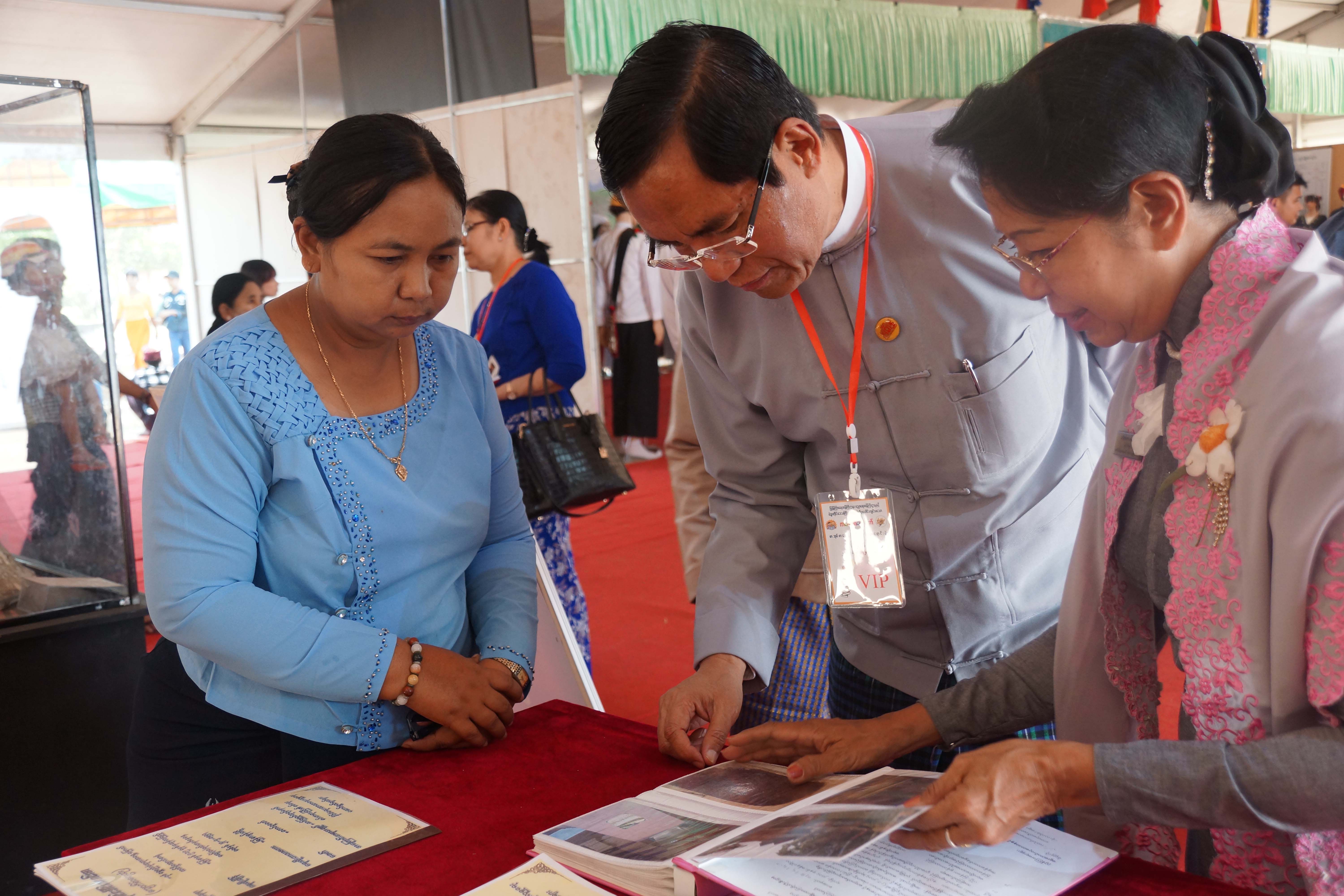 ပြန်ကြားရေးဝန်ကြီးဌာန ဒုတိယဝန်ကြီး ဦးအောင်လှထွန်းသည် ယနေ့နံနက်ပိုင်းတွင် ကလေးစာပေပွဲတော်၊ စာအုပ်စာပေပြပွဲနှင့် စာအုပ်ဈေးရောင်းပွဲ ကျင်းပသည့် ပဲခူးမြို့ ပဲခူးတက္ကသိုလ်ဝင်းအတွင်း လှည့်လည်ကြည့်ရှုသည်။