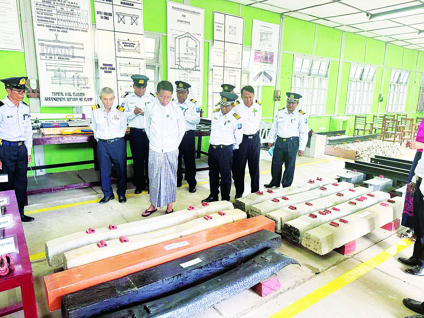 ထို့နောက် ကျောင်းအုပ်ကြီးက ကျောင်းဝင်းအတွင်းရှိ ရထား မြို့ပြသရုပ်ပြဆောင်၊ ရထားစက်မှုနှင့်လျှပ်စစ် သရုပ်ပြဆောင်၊ ရထားသွားလာပို့ဆောင်ရေး သရုပ်ပြဆောင်နှင့် မော်တော်ယာဉ် သင်တန်းသရုပ်ပြဆောင်တို့ကို လိုက်လံရှင်းလင်းပြသရာ ဒုတိယဝန်ကြီးက သင်တန်းသားများကို ဌာနအဖွဲ့အစည်းများအတွက် စွမ်းဆောင်ရည် မြင့်မားသော ဝန်ထမ်းများဖြစ်အောင် လေ့ကျင့်သင်ကြားပေးရန်၊ သင်တန်းအလိုက် သင်တန်းသားများ အမှန်တကယ် ကျွမ်းကျင်တတ်မြောက်စေရန်နှင့် ဝန်ထမ်းများအနေဖြင့် သင်တန်းမှရရှိခဲ့သည့် အသိပညာ၊ အတတ်ပညာများကို လက်တွေ့လုပ်ငန်းခွင်တွင် ပြန်လည်အသုံးချနိုင်စေရန် နည်းပြများအနေဖြင့် စနစ်တကျလေ့ကျင့်သင်ကြားပေးရန် မှာကြားသည်။