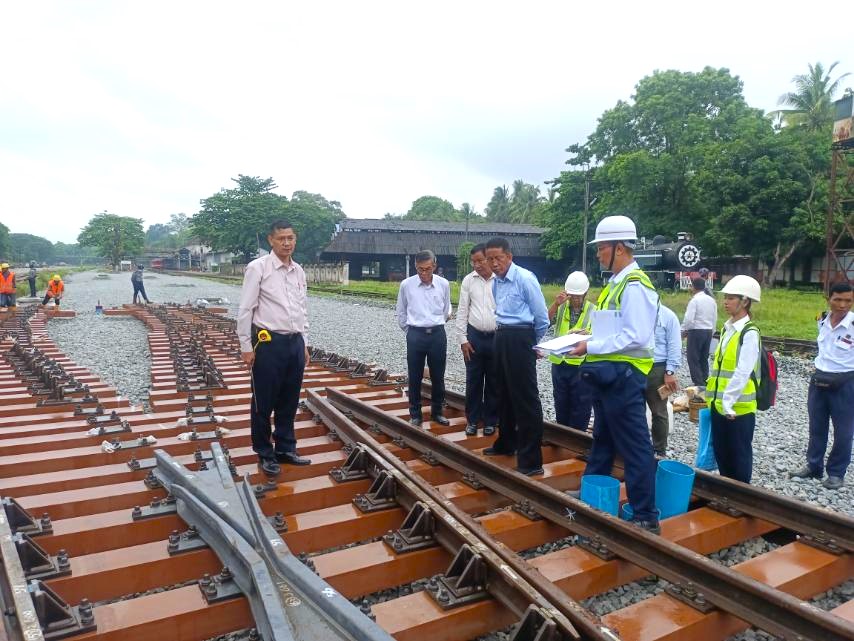 ပို့ဆောင်ရေးနှင့် ဆက်သွယ်ရေးဝန်ကြီးဌာန ဒုတိယဝန်ကြီး ဦးအောင်မြိုင် သည် မြန်မာ့မီး ရထားမှ အထွေထွေမန်နေဂျာများ ၊ တိုင်းတာဝန်ခံ အရာရှိများနှင့်အတူ ဇွန် (၁၃) ရက်မှ (၁၆) ရက် အထိ နေပြည်တော် - တောင်ငူ ရထားလမ်းပိုင်း အခြေအနေ၊ ရန်ကုန် - မန္တလေး ရထားလမ်း အဆင့်မြှင့် တင်ရေးစီမံကိန်း အပိုင်း(၁)ဖြစ်သည့် တောင်ငူ - ညောင်လေးပင် - ပဲခူး - ရန်ကုန် ရထားလမ်းပိုင်း အဆင့်မြှင်တင်နေမှု အခြေအနေနှင့် ရန်ကုန်မြို့ပတ်ရထားလမ်းပိုင်းနှင့် စက်ခေါင်းပြင်ရုံများတွင် RBE ရထားများပြုပြင်နေမှု အခြေအနေတို့ကို ကြည့်ရှုစစ်ဆေးသည်။