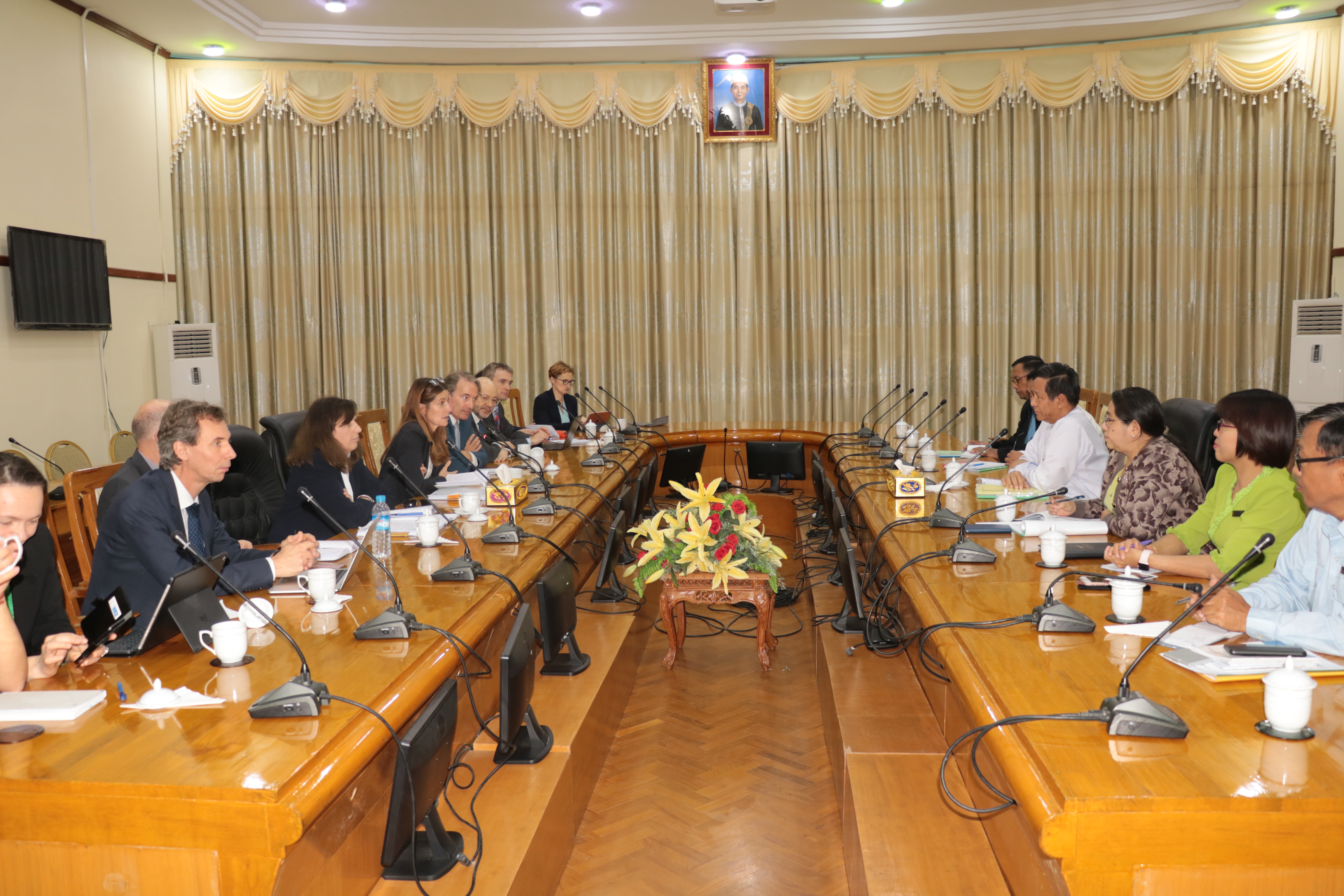 တွေ့ဆုံစဉ် ဥရောပသမဂ္ဂမှ Everything But Arms (EBA) အစီအစဉ်အရ မြန်မာနိုင်ငံအား ကုန်သွယ်မှုဆိုင်ရာ အခွင့်အလမ်းများ ပေးအပ်ထားသည့်အတွက် ဥရောပသမဂ္ဂသို့ ပို့ကုန်များ ပိုမိုတင်ပို့လျက်ရှိပါကြောင်း၊ လက်ရှိရရှိထားသည့် Generalized System of Preferences (GSP) အကျိုးခံစားခွင့်အား ဆက်လက်ထိန်းသိမ်းပြီး ပို့ကုန်တိုးမြှင့်တင်ပို့ခြင်းနှင့် နိုင်ငံသားများအတွက် အလုပ်အကိုင်များ ပိုမိုဖန်တီးပေးနိုင်ခြင်း တို့မှတစ်ဆင့် နိုင်ငံ၏ စီးပွားရေး ဖွံ့ဖြိုးတိုးတက်မှုကို ဖော်ဆောင်သွားနိုင်ရေး၊ မြန်မာနှင့် ဥရောပသမဂ္ဂအကြား ကုန်သွယ်ရေးနှင့် ရင်းနှီးမြှုပ်နှံမှုများ တိုးတက်ရေးအတွက် ဆက်လက်ပူးပေါင်း ဆောင်ရွက်သွားမည့် ကိစ္စရပ်များကို ရင်းနှီးပွင့်လင်းစွာ ဆွေးနွေးကြသည်။
