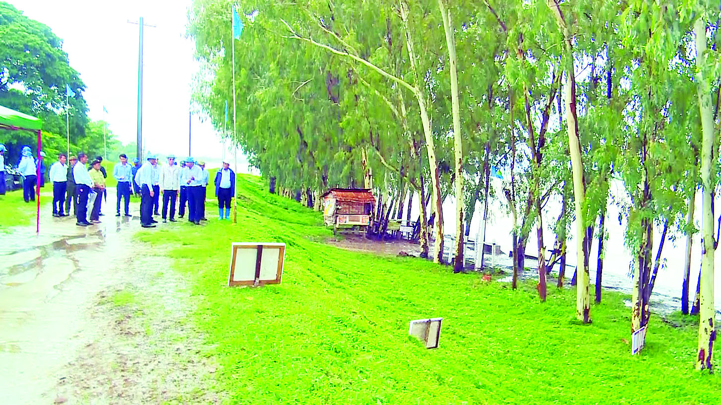 ယင်းနောက် ဒုတိယဝန်ကြီးသည် ဟင်္သာတခရိုင်၊ ဇလွန်မြို့နယ် ဧရာဝတီ-ဟင်္သာတတာ တာမိုင် ၂၅/၂ရှိ တာတမံအခြေအနေ၊ မြစ်ရေတက်ရောက်မှုနှင့် ရေဘေးကာကွယ်ရေးအတွက် ကြိုတင်ပြင်ဆင် ထားရှိမှုအခြေအနေ၊ ဆန်တန်းရေကင်းစခန်းနှင့် ဧရာဝတီဟင်္သာတတာ တာတိုင် ၃၅/၅ နှင့် ၃၆/၄ ကြားရှိ တာတမံကြိုတင်ပြုပြင်ခြင်းလုပ်ငန်းများ သတ်မှတ်ပုံစံပြည့်မီမှု၊ ရေလွတ်ပေါင်လုံလောက်မှု ရှိ မရှိအခြေအနေတို့ကိုစစ်ဆေးကာ မိုးရာသီအတွင်း တာတမံများတွင် ရေဘေးကာကွယ်ရေးလုပ်ငန်းများ ဆောင်ရွက်နိုင်ရန်အတွက် အရေးကြီးသည့်နေရာများတွင် စက်ယန္တရားကြီးများ အဆင်သင့်စီစဉ် ထားရှိကြရန်၊ အရေးပေါ်သုံးပစ္စည်းများ အဆင်သင့်စုဆောင်းထားကြရန်၊ ရေဘေးကာကွယ် ရေးတာများတွင် တာ/တမံ/ရေတံခါးများ၏ ကြံ့ခိုင်လုံခြုံမှုကို ထိခိုက်စေနိုင်သောအခြေအနေများ ဖြစ်ပေါ်နေမှုရှိမရှိ အထူးအလေးထားပြီး အသေးစိတ်စစ်ဆေးကြရန် ဆွေးနွေးမှာကြားကာ ရေကင်းစောင့်ဝန်ထမ်းများကို အားပေးစကားပြောကြား၍ ထောက်ပံ့ပစ္စည်းများ ပေးအပ်သည်။