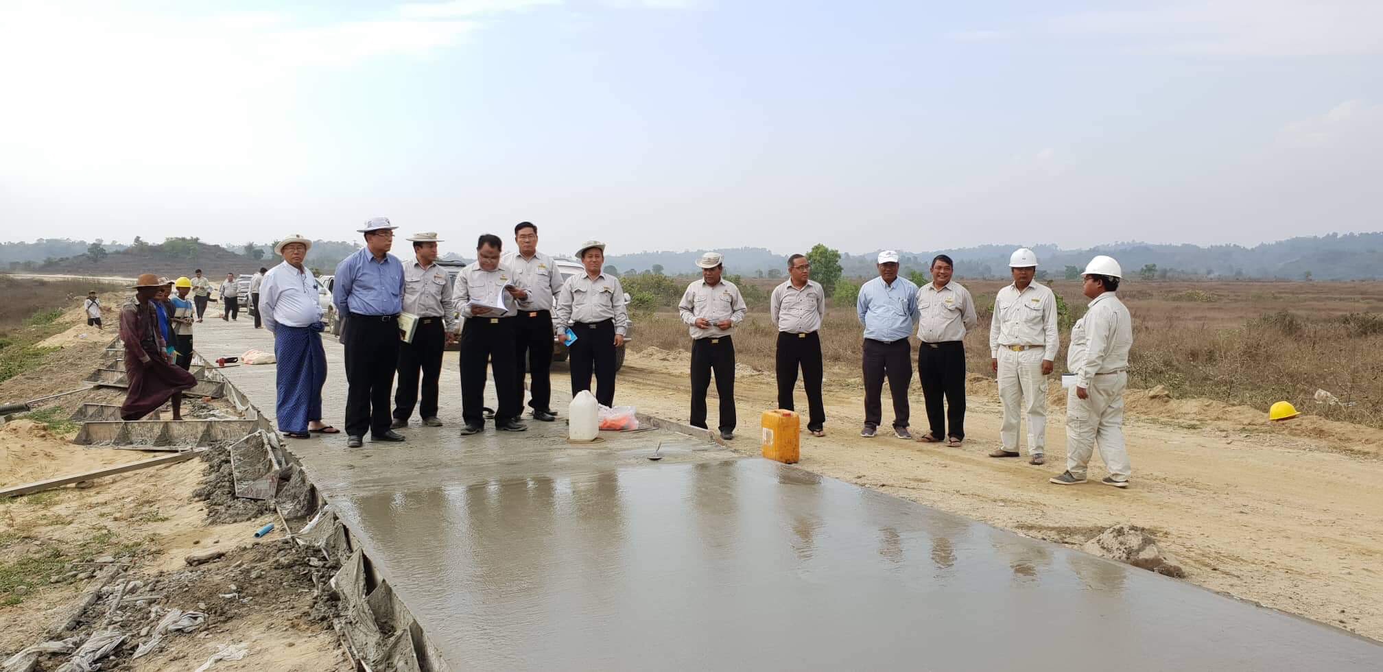 မောင်တောဒေသရှိ Asia  World  Co.,Ltd  မှ UEHRD ၏ အစီစဉ်ဖြင့် ကွန်ကရစ်လမ်း ဖောက်လုပ်နေသော အငူမော် - မောင်တောလမ်းအား ယမန်နေ့မွန်းလွဲပိုင်းတွင် ဒုတိယဝန်ကြီး ဦးကျော်လင်းနှင့် တာဝန်ရှိသူများက ကြည့်ရှုစစ်ဆေးသည်။