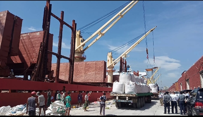 ကုန်သွယ်မှုနှင့် ကုန်စည်စီးဆင်းမှုများ မှန်ကန်မြန်ဆန်စေရေးလုပ်ငန်းကော်မတီ ဥက္ကဌ ဒုတိယဝန်ကြီးနှင့်အဖွဲ့သည် နံနက် ၁၀ နာရီခွဲတွင် အမှတ်(၁)ဆူးလေဆိပ်ကမ်းသို့ ရောက်ရှိပြီး ဆိပ်ကမ်းတာဝန်ကျများမှ ဆိပ်ကမ်းပိုင်းဆိုင်ရာ အချက်အလက်များ၊ မြန်မာ နိုင်ငံဆန်စပါးအသင်းချုပ်မှ တာဝန်ရှိသူများက ပြည်ပသို့ဆန်တင်ပို့မှုကို ရှင်းလင်းတင်ပြ ရာ လိုအပ်သည်များ ပေါင်းစပ်ညှိနှိုင်းဆောင်ရွက်ပေးခဲ့ပြီး MV–VTC Ocean တွင် ဆန်တန် ချိန် (၂၁,၃၀၀) ၊ MV-VOLA တွင် ဆန်တန်ချိန် (၂၆,၇၅၀)နှင့် MV-AGIA IOANNA တွင် ဆန်တန်ချိန်(၃၀,၂၅၀) သင်္ဘောများပေါ်သို့တင်ဆောင်၍ ထွက်ခွာမည့် အခြေအနေများ ကို ကြည့်ရှုအားပေးသည်။