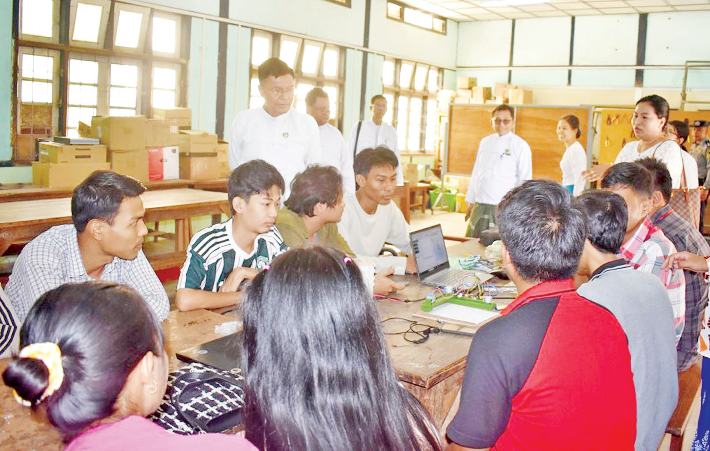 ယင်းနောက် ဘာသာရပ်အလိုက် ကျောင်းသား ကျောင်းသူများက လက်တွေ့ဆောင်ရွက်နေမှု၊ တီထွင်ဖန်တီးစမ်းသပ်နေမှုများကို လိုက်လံကြည့်ရှုအားပေးပြီး အမှန်တကယ် တတ်မြောက်အောင် သင်ယူကြရန်၊ လေ့လာ ဆန်းသစ်တီထွင်မှုများဖြင့် နိုင်ငံကို အကျိုးပြုနိုင်မည့် အတတ်ပညာရှင်များဖြစ်အောင် ကြိုးစားကြရန် မှာကြားအားပေးပြီး ကျောင်းစာကြည့်တိုက်အတွက် စာအုပ်စာစောင်များ လှူဒါန်းသည်။
