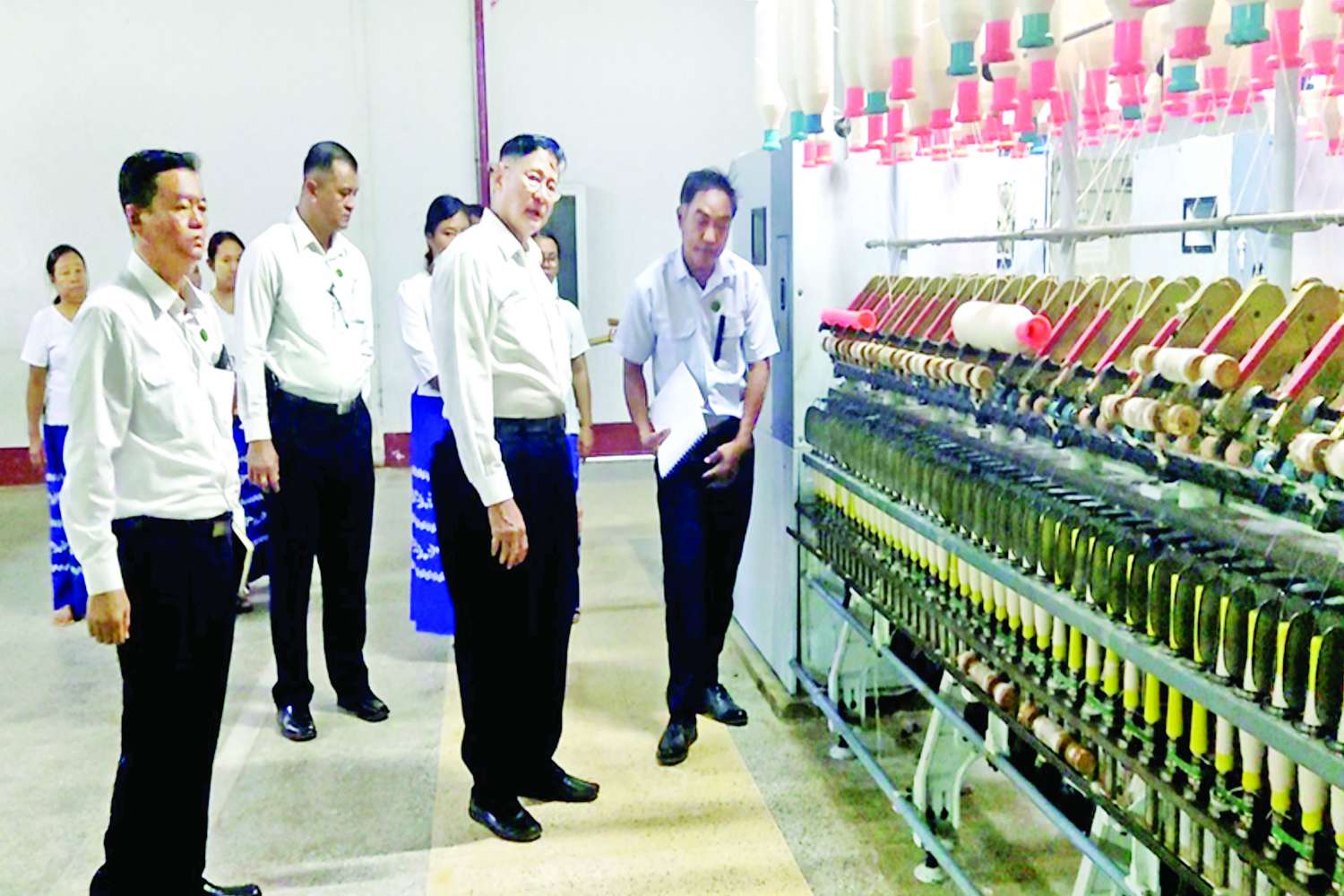 ဇွန် ၂၉ ရက် နံနက်ပိုင်းတွင် ဒုတိယဝန်ကြီးသည် မန္တလေးတိုင်းဒေသကြီး မြစ်သားမြို့နယ်ရှိ အမှတ်(၇)အထည်စက်ရုံ (မြစ်သား) မန္တလေးငလျင်ကြီးကြောင့် ထိခိုက်ပျက်စီးခဲ့မှု၊ ပြင်ဆင်ဆောင်ရွက်ပြီးစီးမှုနှင့် စက်ရုံအတွင်း ကုန်ထုတ်လုပ်ငန်းဆောင်ရွက်နေမှုတို့ကို လှည့်လည် ကြည့်ရှုစစ်ဆေးပြီး လိုအပ်သည်များကို မှာကြားဖြည့်ဆည်း ဆောင်ရွက်ပေးသည်။