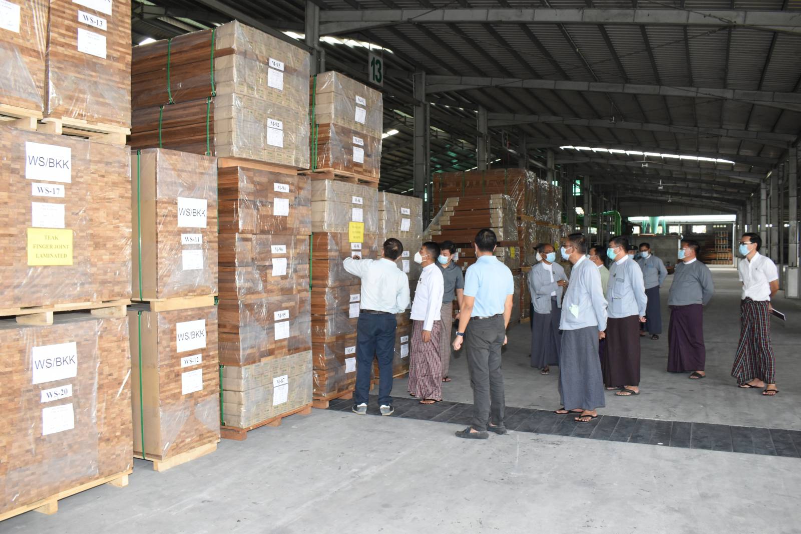 ထို့နောက် စက်ရုံရှင်းလင်းဆောင်တွင် အုပ်ချုပ်မှုဒါရိုက်တာ ဦးကျော်ဝင်းက National Wood Industry လီမိတက်အနေဖြင့် သင်္ဘောကိုယ်ထည်နှင့် ကြမ်းခင်းတွင်အသုံးပြုသည့် သစ် အချောထည် (Decking) အပါအဝင် သစ်အချောထည်ပစ္စည်း များကိုထုတ်လုပ်တင်ပို့လျက်ရှိရာ ၂၀၂၀-၂၀၂၁ ဘဏ္ဍာနှစ်တွင် သစ်အချောထည် ၈၄၆ ဒသမ ၂၇ ကုဗတန်၊ ၂၀၂၁-၂၀၂၂ ၆ လ ဘဏ္ဍာနှစ်တွင် သစ်အချောထည် ၈၃၃ ဒသမ ၃၈ ကုဗတန်၊ ၂၀၂၂-၂၀၂၃ ဘဏ္ဍာနှစ်တွင် ၈၁၆ ဒသမ ၅၇ ကုဗတန်ကို ပြည်ပနိုင်ငံများသို့ တင်ပို့နိုင်ခဲ့ပါကြောင်း၊ ယခုလည်း ဆက်လက် တင်ပို့လျက်ရှိကြောင်း ထို့ပြင် ထုတ်လုပ်မှုအဆင့်ဆင့်မှ ထွက်ရှိလာသည့် ဘေးထွက်ပစ္စည်း များကိုလည်း အဆင့်မြင့်နည်းပညာအသုံးပြု၍ သစ်အခြေခံအချောထည်များအဖြစ် ထုတ်လုပ်လျက်ရှိကြောင်းနှင့် သစ်အခြေခံအချောထည်ပစ္စည်းများအား ပြည်ပသာမက ပြည်တွင်း လိုအပ်ချက်များအတွက်ပါ ဖြည့်ဆည်းပေးလျက်ရှိပါကြောင်း ရှင်းလင်းတင်ပြသည်။
