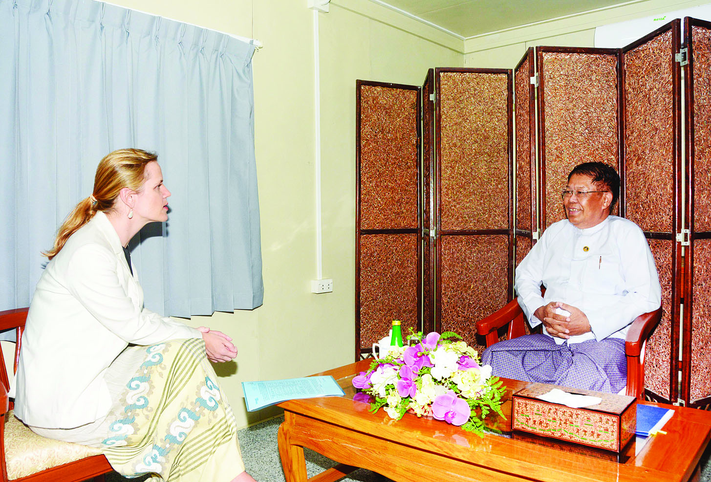 ဒုတိယဝန်ကြီးချုပ်နှင့် နိုင်ငံခြားရေးဝန်ကြီးဌာန ပြည်ထောင်စုဝန်ကြီး ဦးသန်းဆွေသည် ကုလသမဂ္ဂ စီမံကိန်းဝန်ဆောင်မှုရုံး (UNOPS) ၏ မြန်မာနိုင်ငံဆိုင်ရာ ညွှန်ကြားရေးမှူးနှင့် ကိုယ်စားလှယ် Ms. Sara Austin Netzer အား ယနေ့မွန်းလွဲ ၁ နာရီတွင် နိုင်ငံခြားရေးဝန်ကြီးဌာန၌ လက်ခံတွေ့ဆုံသည်။