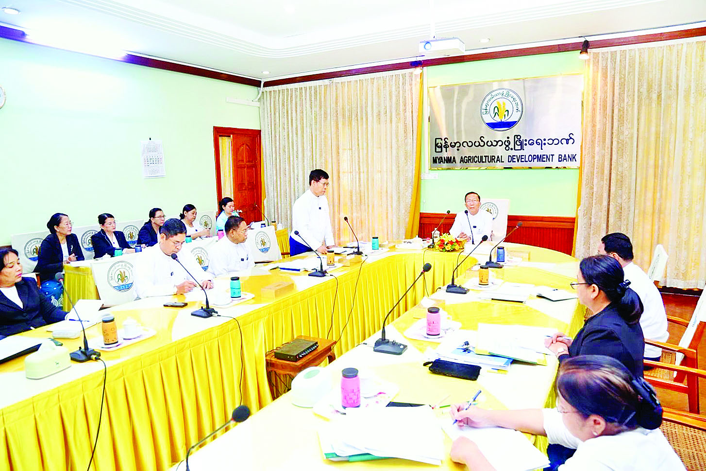 ထို့နောက် ဒုတိယဝန်ကြီးချုပ်နှင့် ပြည်ထောင်စုဝန်ကြီးသည် မြန်မာ့လယ်ယာဖွံ့ဖြိုးရေးဘဏ်(ရုံးချုပ်)သို့ ရောက်ရှိရာ မြန်မာ့လယ်ယာဖွံ့ဖြိုးရေးဘဏ် ဦးဆောင်ညွှန်ကြားရေးမှူးနှင့် တာဝန်ရှိသူများက လုပ်ငန်းဆောင်ရွက်မှုအခြေအနေများကို ရှင်းလင်းတင်ပြသည်။