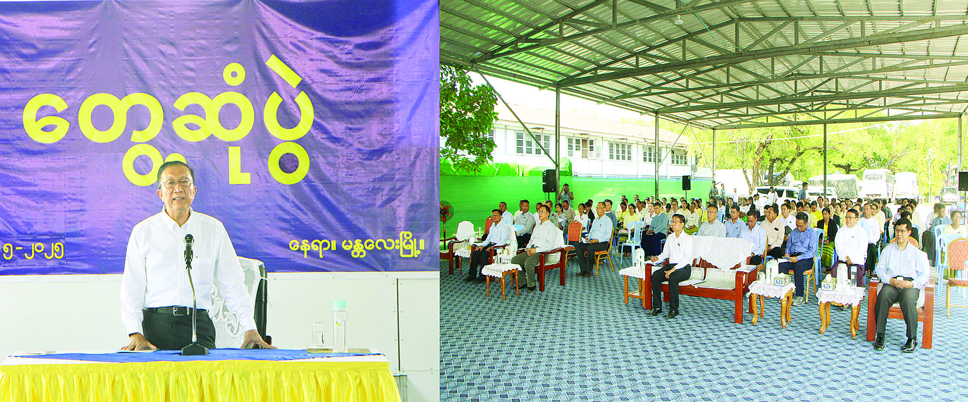 ထို့နောက် ဒုတိယဝန်ကြီးချုပ်နှင့် ပြည်ထောင်စုဝန်ကြီးသည် မန္တလေးတိုင်းဒေသကြီး စီးပွားရေးရာဝန်ကြီး ဦးသိန်းဌေးနှင့်အတူ မန္တလေးမြို့ရှိ တိုင်းအခွန်ဦးစီးဌာနမှူးရုံး၊ တိုင်းအကောက် ခွန်ဦးစီးဌာနမှူးရုံး၊ ငွေရေးကြေးရေးကြီးကြပ်စစ်ဆေးရေး ဦးစီးဌာနရုံး၊ မြန်မာ့ရင်းနှီးမြှုပ်နှံမှုနှင့် ကူးသန်းရောင်းဝယ်ရေးဘဏ်၊ ချမ်းအေးသာစံမြို့နယ် အခွန်ဦးစီးဌာနမှူးရုံး၊ တိုင်းပင်စင်ဦးစီးဌာန ရုံးနှင့် အလယ်အလတ်အခွန်ထမ်းများဆိုင်ရာ အခွန်ရုံး (၅) တို့ကို လိုက်လံကြည့်ရှုစစ်ဆေးပြီး ဝန်ထမ်းများနှင့် မိသားစုဝင်များအား ထောက်ပံ့ငွေနှင့် ပစ္စည်းများ ပံ့ပိုးပေး၍ အားပေးစကားများ ပြောကြားခဲ့ကြောင်း သိရသည်။