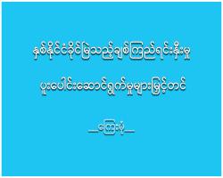 Editorial အယ်ဒီတာ့အာဘော် နှစ်နိုင်ငံခိုင်မြဲသည့်ချစ်ကြည်ရင်းနှီးမှု ပူးပေါင်းဆောင်ရွက်မှုများမြှင့်တင် အယ်ဒီတာ့ အာဘော် 25/02/25 စံပြအတွက်ဆုနှင့် ပြစ်မှုအတွက်ပြစ်ဒဏ် အယ်ဒီတာ့ အာဘော် 24/02/25 အထင်အမြင်လွဲမှားအောင်တိုက်ခိုက်မှုများ အသိ၊ သတိဖြင့်ယှဉ် စဉ်းစားဆင်ခြင် အယ်ဒီတာ့ အာဘော် 24/02/25 နိုင်ငံ့သားကောင်းရတနာများအဖြစ် ဂုဏ်ယူဝင့်ကြွား တာဝန်ထမ်းဆောင် အယ်ဒီတာ့ အာဘော် 18/02/25 အွန်လိုင်းလိမ်လည်မှုနှင့် လောင်းကစားမှု စဉ်ဆက်မပြတ်အရေးယူဆောင်ရွက် အယ်ဒီတာ့ အာဘော် 18/02/25 အွန်လိုင်း ငွေလိမ်၊ လောင်းကစားမှုများ မြန်မာ့မြေပေါ်မှ အမြစ်ပြတ်ရှင်းလင်းဖယ်ရှား အယ်ဒီတာ့ အာဘော် 17/02/25 မြတ်သောရွှေသင်္ကန်း ကပ်လှူပူဇော် ဗုဒ္ဓဘုရားရှင်ကို ကြည်ညိုသဒ္ဓါပွားများ အယ်ဒီတာ့ အာဘော် 17/02/25 ပြည်ထောင်စုဖွားတိုင်းရင်းသားတို့ ပြည်တွင်းအားကို အခိုင်အမာတည်ဆောက် အယ်ဒီတာ့ အာဘော် 11/02/25 တိုင်းရင်းသားစည်းလုံးညီညွတ်မှုဖြင့် ပြည်ထောင်စုကြီးကို လက်တွဲတည်ဆောက် အယ်ဒီတာ့ အာဘော် 11/02/25 ရုပ်ရှင်သည် ပြည်သူ့အတွက် အယ်ဒီတာ့ အာဘော် 10/02/25 Pagination First page « First Previous page ‹ Previous … စာမျက်နှာ 41 စာမျက်နှာ 42 လက်ရှိစာမျက်နှာ 43 စာမျက်နှာ 44 စာမျက်နှာ 45 … Next page Next › Last page Last » အဖတ်များဆုံး သတင်း ဂျပန်နိုင်ငံ၌ ၂၀၂၅ ခုနှစ် ဧပြီလမှ အောက်တိုဘာလအထိ ဖမ်းဆီးရမိသောဝက်ဝံအရေအတွက်စံချိန်တင်များပြား နိုင်ငံတကာ 30/Dec/2025 ၂၀၂၅ ခုနှစ်တွင် ဆူဒန်နိုင်ငံ၏ ရွှေထုတ်လုပ်မှု တန်ချိန် ၇၀ အထိ ရောက်ရှိ စီးပွားရေး 30/Dec/2025 ရန်ကုန်တိုင်းဒေသကြီး၌ ဟိုတယ်နှင့်ခရီးသွားလုပ်ငန်းများ ဖွံ့ဖြိုးတိုးတက်ရေးဆွေးနွေး ပြည်တွင်း 30/Dec/2025 ပြည်ထောင်စုရွေးကောက်ပွဲကော်မရှင်အဖွဲ့ဝင် ဦးမျိုးလှိုင် မြန်မာနိုင်ငံဆိုင်ရာ နီကာရာဂွါနိုင်ငံ သံအမတ်ကြီးအား လက်ခံတွေ့ဆုံ ပြည်တွင်း 30/Dec/2025 (၃၀.၁၂.၂၀၂၅)ရက်နေ့ ဓာတ်သတ္တု(ရွှေ)ရည်ညွှန်းဈေး (Market Rate) စီးပွားရေး 30/Dec/2025