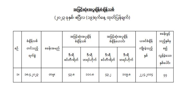 ၂၀၂၃ ခုနှစ်၊ ဧပြီလ (၁၉)ရက်နေ့တွင် မိုးလေဝသနှင့် ဇလဗေဒညွှန်ကြားမှုဦးစီးဌာနမှ ထုတ်ပြန်သည့် ဧပြီလ၏ အမြင့်ဆုံးအပူချိန်စံချိန်သစ်---