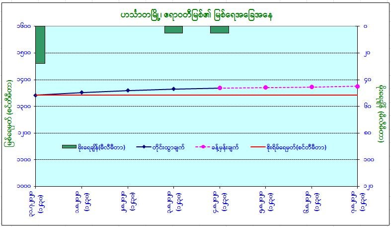 ယနေ့မြန်မာစံတော်ချိန် (၁၂:၃၀)နာရီအချိန် တိုင်းထွာချက်အရ ဧရာဝတီမြစ် ရေသည် ဟင်္သာတမြို့တွင် (၁)ပေခန့် ယင်းမြို့၏ စိုးရိမ်ရေမှတ်အထက်သို့ ကျော်လွန်ရောက်ရှိနေပါသည်။ အဆိုပါမြစ်ရေသည် နောက်(၃)ရက်အတွင်း ယင်းမြို့၏ စိုးရိမ်ရေမှတ်အထက် ဆက်လက်တည်ရှိနိုင်ပါသည်။