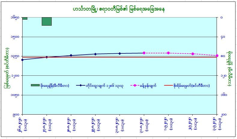 ယနေ့မြန်မာစံတော်ချိန် (၁၀:၃၀)နာရီအချိန် တိုင်းထွာချက်အရ ဧရာဝတီမြစ် ရေသည် ဟင်္သာတမြို့တွင် (၁)ပေခန့်ယင်းမြို့၏ စိုးရိမ်ရေမှတ်အထက် ကျော် လွန်ရောက်ရှိနေပါသည်။ အဆိုပါမြစ်ရေသည် လက်ရှိရေမှတ်မှ နောက်(၃)ရက် အတွင်း ပေဝက်ခန့် ကျဆင်းနိုင်ကာ ယင်းမြို့၏ စိုးရိမ်ရေမှတ်အထက် ဆက် လက်တည်ရှိနိုင်ပါသည်။