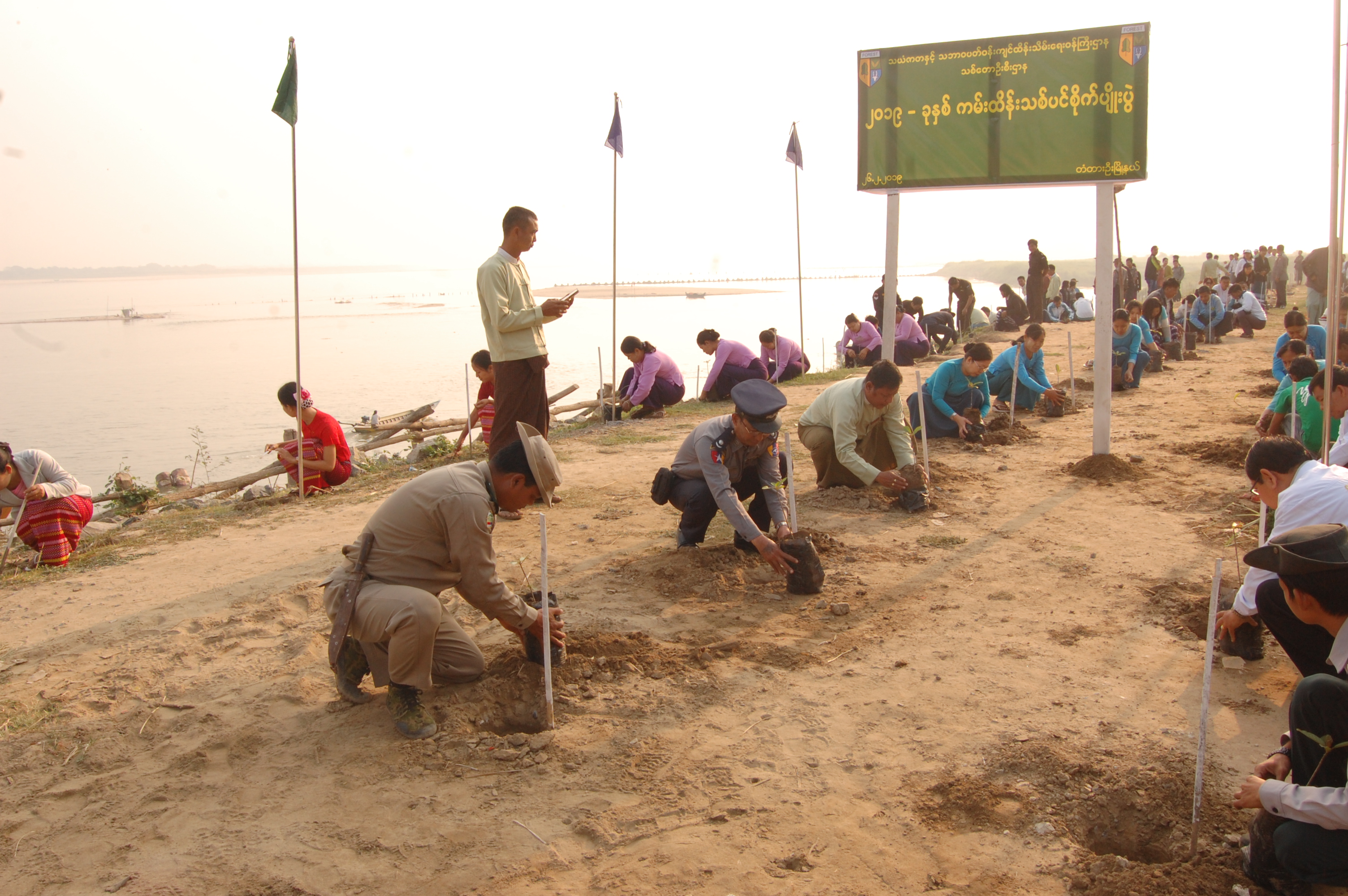 အဆိုပါ သစ်ပင်စိုက်ပျိုးပွဲတွင် မြို့နယ်စီမံခန့်ခွဲမှုကော်မတီ ဥက္ကဋ္ဌ မြို့နယ်အုပ်ချုပ်ရေးမှူး ဦးလှဝင်းအောင်နှင့် ဌာန ဆိုင်ရာဝန်ထမ်းများ၊ လူမှုရေး အသင်းအဖွဲ့များ၊ မြို့နယ်သစ်တောဦးစီးဌာနမှ ဝန်ထမ်းများ၊ ကျေးရွာအုပ်ချုပ်ရေးမှူးများ၊ မြစ်ကမ်းပါးတစ်လျှောက် ကျေးရွာနေပြည်သူများ၊ လက်ဆောင်ယူ၊ ဥယျာဉ်၊ မြေငူကျေးရွာတို့မှ ဒေသခံပြည်သူများ စုပေါင်း စိုက်ပျိုးခဲ့ကြကြောင်း သိရသည်။