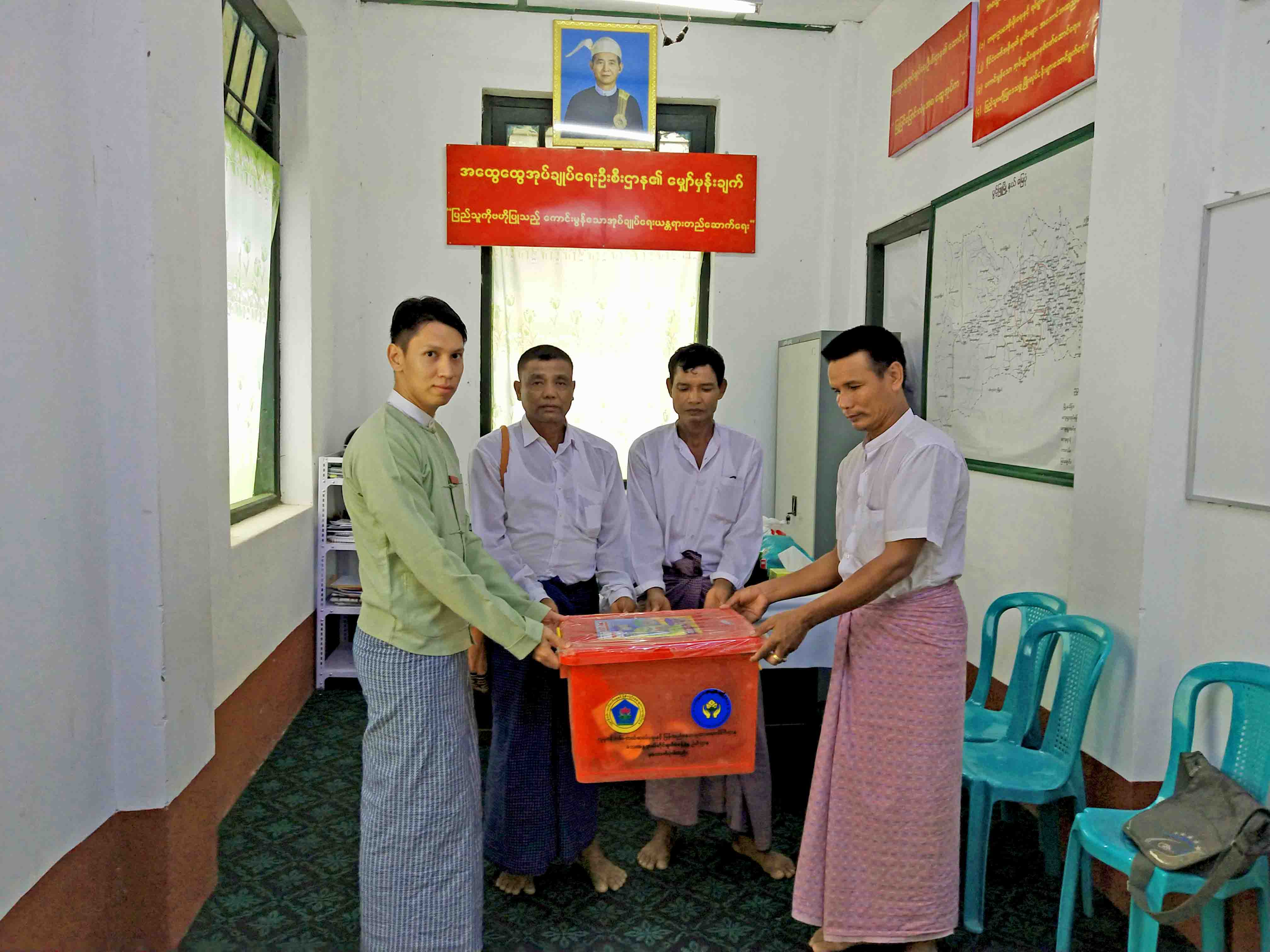 မြစ်ကမ်းပါးပြို၍ ပြောင်းရွှေ့ရသည့် အိမ်ထောင်စုများအတွက် ထောက်ပံ့ငွေနှင့် ကယ်ဆယ်ရေးပစ္စည်းများ ပေးအပ်ရာတွင် မြို့နယ်အထွေထွေအုပ်ချုပ်ရေးဦးစီးဌာနမှ ဒုတိယမြို့နယ်အုပ်ချုပ်ရေးမှူး ဦးပြည့်ဖြိုးကျော်က ထောက်ပံ့ငွေပေးအပ်ရခြင်း၏ ရည်ရွယ်ချက်နှင့် သဘာဝဘေးအန္တရာယ် ကြိုတင်ကာကွယ်ရေးလုပ်ငန်းများ ကြိုတင် ပြင်ဆင်ဆောင်ရွက်ထားရန်လုပ်ငန်းများကို ရှင်းလင်းဆွေးနွေး ပြောကြားသည်။