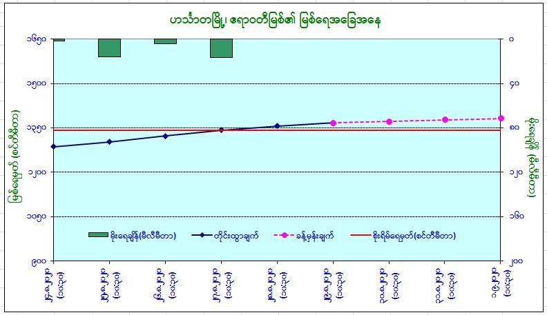 ယနေ့မြန်မာစံတော်ချိန် (၁၀:၃၀)နာရီအချိန် တိုင်းထွာချက်အရ ဧရာဝတီမြစ်ရေသည် ဟင်္သာတမြို့တွင် (၁)ပေခန့် ယင်းမြို့၏ စိုးရိမ်ရေမှတ်အထက်ကျော်လွန်ရောက်ရှိနေပါသည်။ အဆိုပါမြစ်ရေသည် လက်ရှိရေမှတ်မှနောက်(၃)ရက်အတွင်း ပေဝက်ခန့် ဆက်လက်တက်လာနိုင်ကာ ယင်းမြို့၏ စိုးရိမ်ရေ မှတ်အထက် ဆက်လက်တည်ရှိနိုင်ပါသည်။
