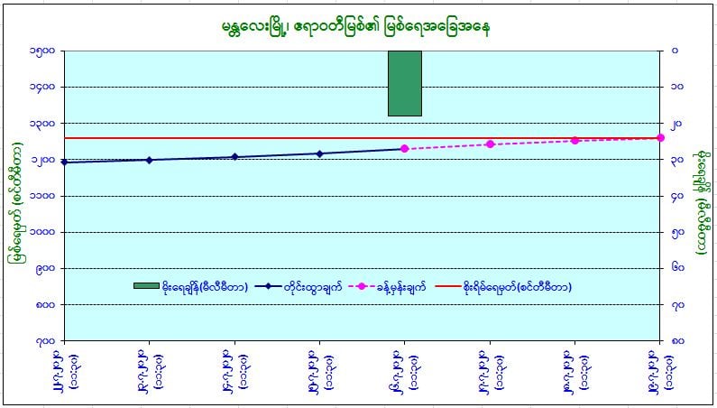 မိုးလေဝသနှင့် ဇလဗေဒညွှန်ကြားမှုဦးစီးဌာနမှ ယနေ့ မွန်းတည့် ၁၂ နာရီတွင် မြစ်ရေကြီးခြင်းသတိပေးချက်ကို ထုတ်ပြန်ရာ ယနေ့ နံနက် ၁၁ နာရီခွဲ တိုင်းထွာချက်များအရ ဧရာဝတီမြစ်ရေသည် မန္တလေးမြို့နှင့် မြင်းမူမြို့တို့တွင် (၁)ပေခန့်နှင့် စစ်ကိုင်းမြို့တွင် ပေဝက်ခန့် ယင်းမြို့များ၏ စိုးရိမ်ရေမှတ်အသီးသီး အောက်တွင် ရောက်ရှိနေသည်။ အဆိုပါမြစ်ရေများသည် မန္တလေးမြို့နှင့် မြင်းမူမြို့တို့တွင် နောက်(၃)ရက်အတွင်းနှင့် စစ်ကိုင်းမြို့တွင် နောက်(၂)ရက်အတွင်း ယင်းမြို့များ၏ စိုးရိမ်ရေမှတ်အသီးသီးသို့ ရောက်ရှိနိုင်သည်။