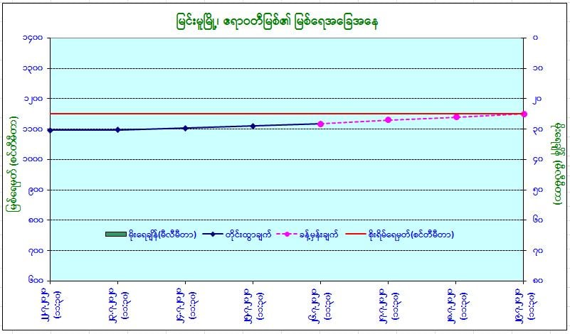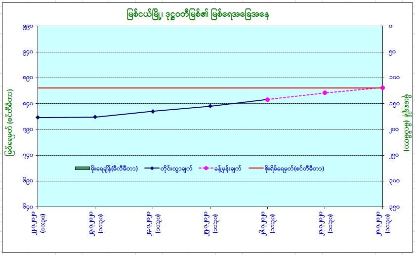 ယနေ့ နံနက် ၁၁ နာရီခွဲ တိုင်းထွာချက်အရ ဒုဋ္ဌဝတီမြစ်ရေသည် မြစ်ငယ်မြို့တွင် ပေဝက်ခန့် ယင်းမြို့၏ စိုးရိမ်ရေမှတ်အောက်တွင် ရောက်ရှိနေပြီး နောက်(၂)ရက်အတွင်း ယင်းမြို့၏ စိုးရိမ်ရေမှတ်သို့ ရောက်ရှိနိုင်သည်။