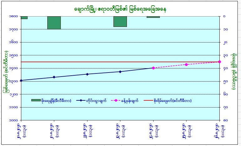 ယနေ့မြန်မာစံတော်ချိန် (၁၁:၃၀)နာရီအချိန် တိုင်းထွာချက်အရ ဧရာဝတီမြစ် ရေသည် ချောက်မြို့တွင် (၁)ပေခွဲခန့် ယင်းမြို့၏ စိုးရိမ်ရေမှတ်အောက်တွင် ရောက်ရှိနေပါသည်။ အဆိုပါမြစ်ရေသည် နောက်(၂)ရက် အတွင်း ယင်းမြို့၏ စိုးရိမ်ရေမှတ်သို့ ရောက်ရှိနိုင်ပါသည်။