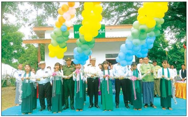 ဧရာဝတီတိုင်းဒေသကြီး ဝန်ကြီးချုပ် ဦးတင်မောင်ဝင်းနှင့်အဖွဲ့သည် ကျောင်းကုန်းမြို့နယ် ကျောင်းအိုင် အုပ်စု ကျောင်းအိုင်ကျေးရွာ လင်းလက်နေခြည် စာကြည့်တိုက်သစ်ဖွင့်ပွဲ အခမ်းအနားသို့ ယမန်နေ့ မွန်းလွဲပိုင်းက ရောက်ရှိကာ ဧရာဝတီတိုင်းဒေသကြီးဝန်ကြီးချုပ် ဦးတင်မောင်ဝင်း၊ လုံခြုံရေးနှင့် နယ်စပ် ရေးရာဝန်ကြီး ဗိုလ်မှူးကြီး မိုးမင်းနိုင်၊ လမ်းပန်းဆက်သွယ်ရေးဝန်ကြီး ဦးနေမျိုးအောင်၊ လူမှုရေးရာ ဝန်ကြီး ဦးခင်မောင်ကြည်နှင့် ကျုံပျော်ခရိုင် စီမံအုပ်ချုပ်ရေးအဖွဲ့ဥက္ကဋ္ဌ ဦးစောထွန်းဝင်းတို့က ဖဲကြိုးဖြတ်ဖွင့်လှစ် ပေးခဲ့ကြသည်။